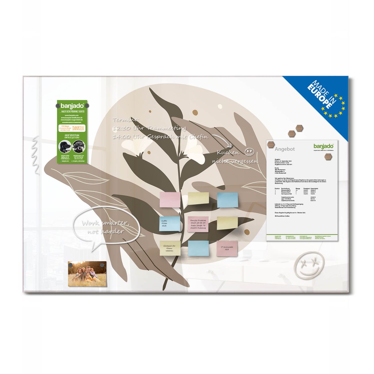 Die banjado Glas Magnettafel mit dem Motiv Motiv Zarte Berührung verbindet Funktionalität mit Stil. Sie ersetzt das Zettelchaos durch klare Strukturen und bringt dabei eine warme, natürliche Atmosphäre in Ihr Zuhause. Ob im Büro, in der Küche oder im Eingangsbereich - dieses Design-Board zieht Blicke an und sorgt für Ordnung mit Charakter.