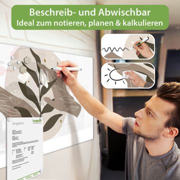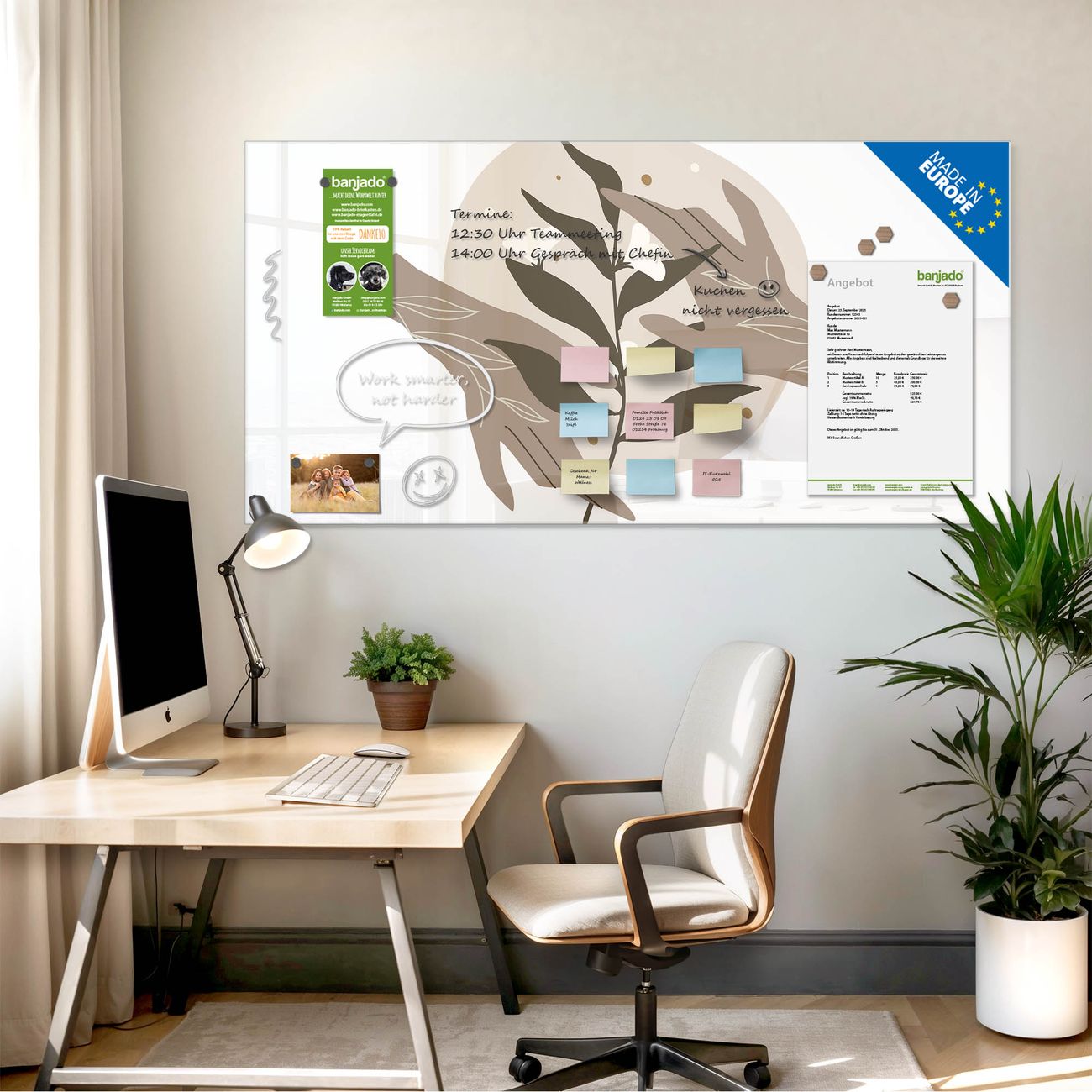 Jede Glas Magnettafel wird in unserer Werkstatt von Hand gefertigt und sorgfältig geprüft. So erhalten Sie ein echtes Qualitätsprodukt, das Funktion und Ästhetik perfekt vereint.?? Warum banjado?