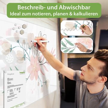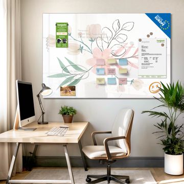 Die banjado Glas Magnettafel mit dem Motiv Motiv Zarte Blumenkomposition verbindet Funktionalität mit Stil. Sie ersetzt das Zettelchaos durch klare Strukturen und bringt dabei eine warme, natürliche Atmosphäre in Ihr Zuhause. Ob im Büro, in der Küche oder im Eingangsbereich - dieses Design-Board zieht Blicke an und sorgt für Ordnung mit Charakter.
