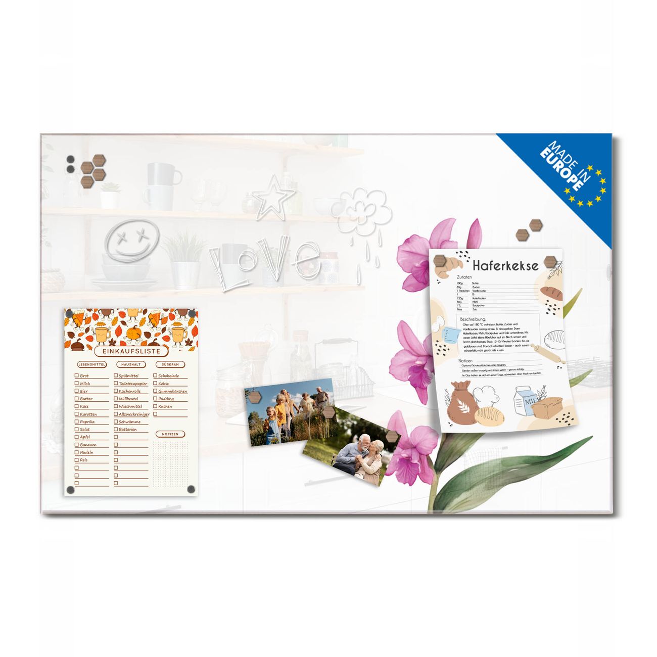Ein Stück Design, das Ihren Alltag organisiert. Schreiben, heften, inspirieren - alles an einem Ort. Qualität, die man spürt. Montage leicht gemacht. Handwerk mit Herz - veredelt in Sachsen. Einzigartiges Design mit Motiv Motiv Zarte Orchidee Beschreibbare Glasoberfläche, leicht zu reinigen Starke Magnetkraft durch Stahlrückwand Inklusive 4 Neodym-Magneten Flexible Montageoptionen Handveredelt in Sachsen - Qualität, die bleibt