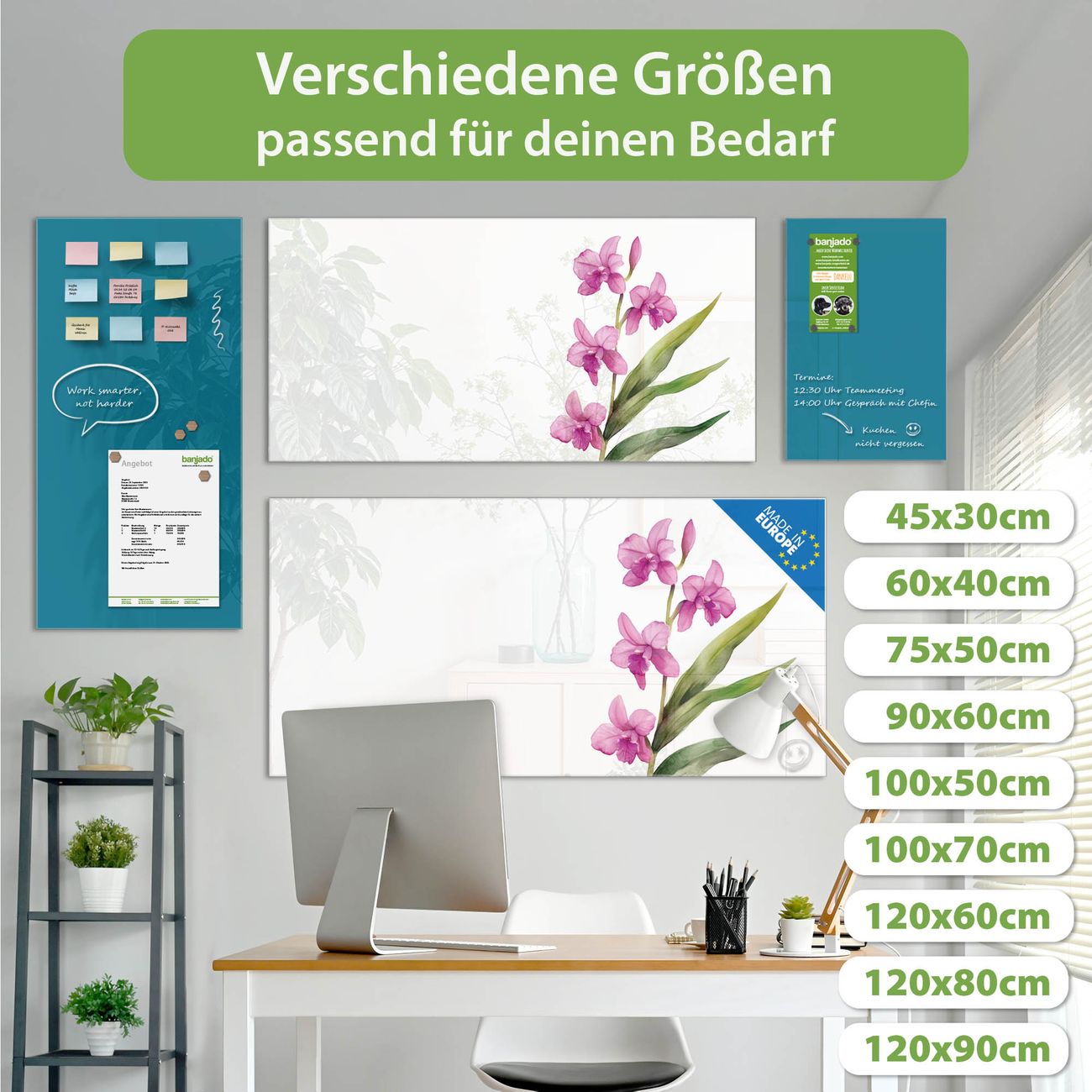 Jede Glas Magnettafel wird in unserer Werkstatt von Hand gefertigt und sorgfältig geprüft. So erhalten Sie ein echtes Qualitätsprodukt, das Funktion und Ästhetik perfekt vereint.?? Warum banjado?