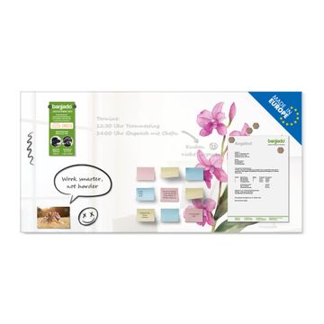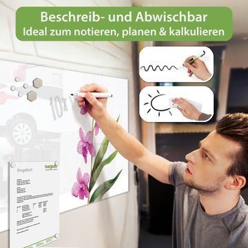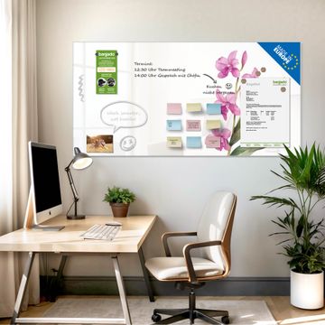 Die banjado Glas Magnettafel mit dem Motiv Motiv Zarte Orchidee verbindet Funktionalität mit Stil. Sie ersetzt das Zettelchaos durch klare Strukturen und bringt dabei eine warme, natürliche Atmosphäre in Ihr Zuhause. Ob im Büro, in der Küche oder im Eingangsbereich - dieses Design-Board zieht Blicke an und sorgt für Ordnung mit Charakter.