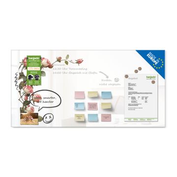 Auf der glatten Glasoberfläche lassen sich Termine, Rezepte oder Notizen ganz einfach mit Kreidestiften festhalten und rückstandslos entfernen. Starke Neodym-Magnete halten Ihre wichtigsten Erinnerungen sicher an Ort und Stelle. So entsteht Ihre ganz persönliche Ideenwand - jeden Tag neu.