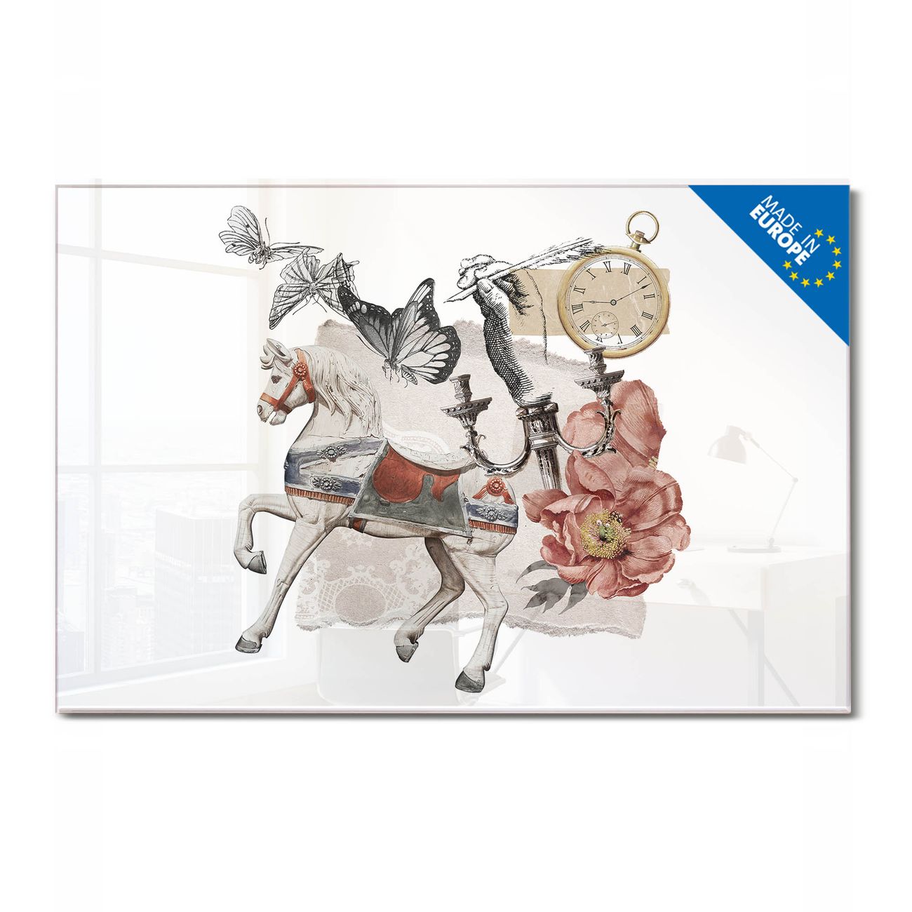 Glas Magnettafel im Querformat Motiv Zeitreise-Kollage