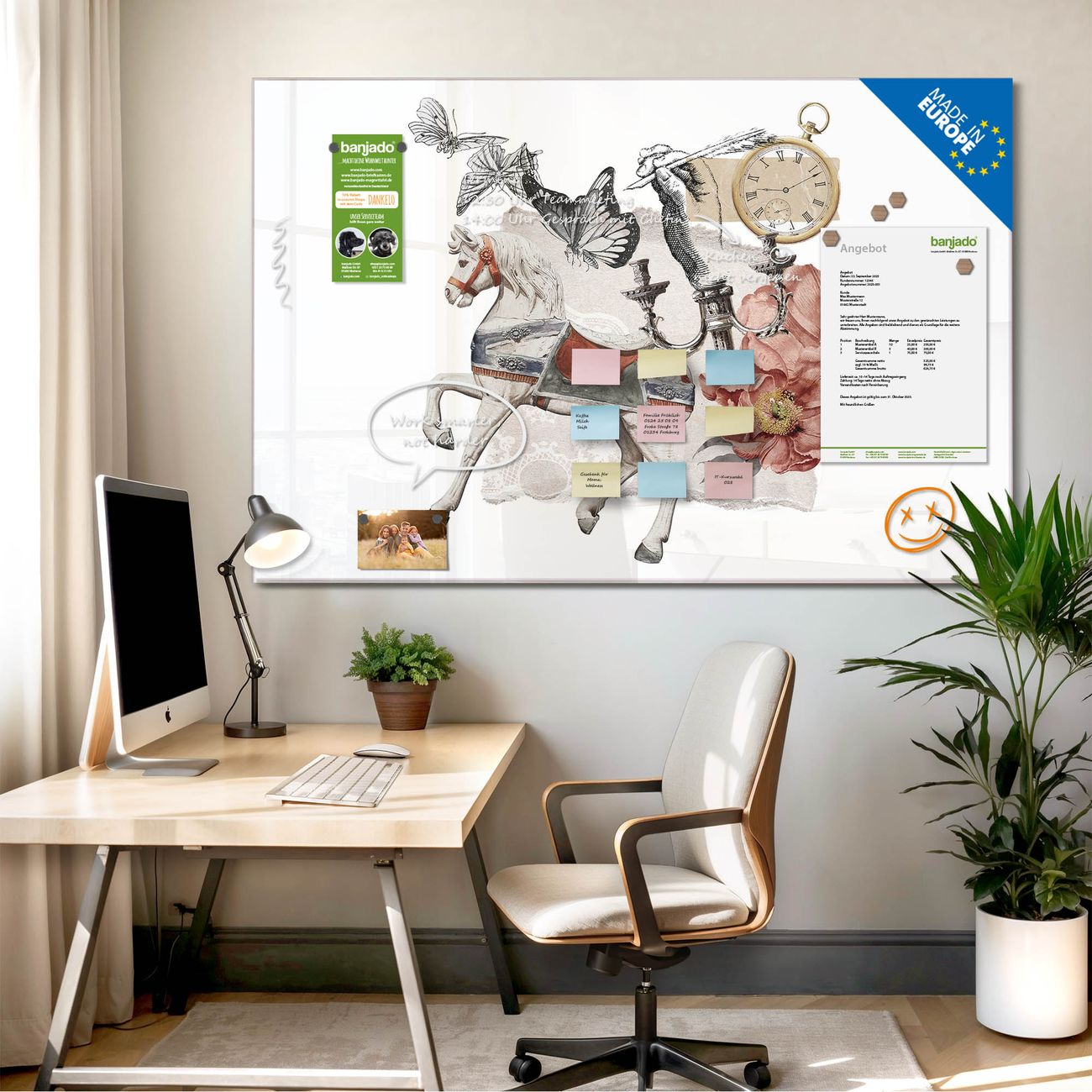 Die banjado Glas Magnettafel mit dem Motiv Motiv Zeitreise-Kollage verbindet Funktionalität mit Stil. Sie ersetzt das Zettelchaos durch klare Strukturen und bringt dabei eine warme, natürliche Atmosphäre in Ihr Zuhause. Ob im Büro, in der Küche oder im Eingangsbereich - dieses Design-Board zieht Blicke an und sorgt für Ordnung mit Charakter.