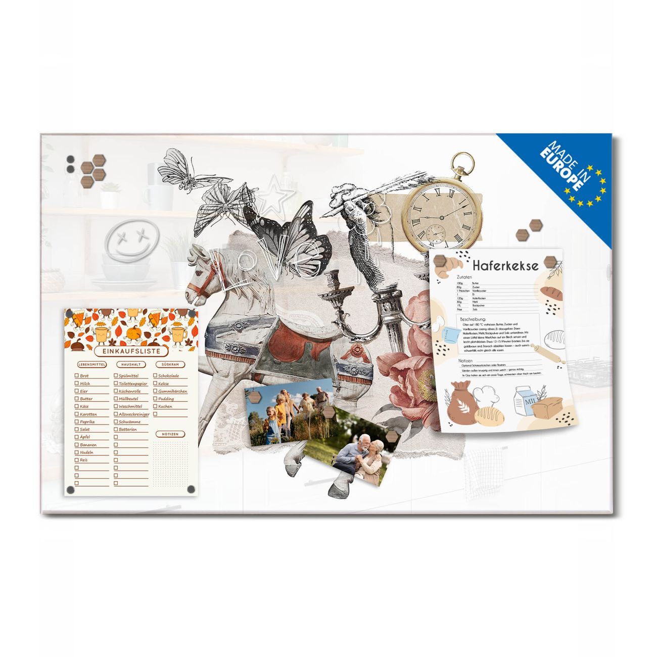 Glas Magnettafel im Querformat Motiv Zeitreise-Kollage