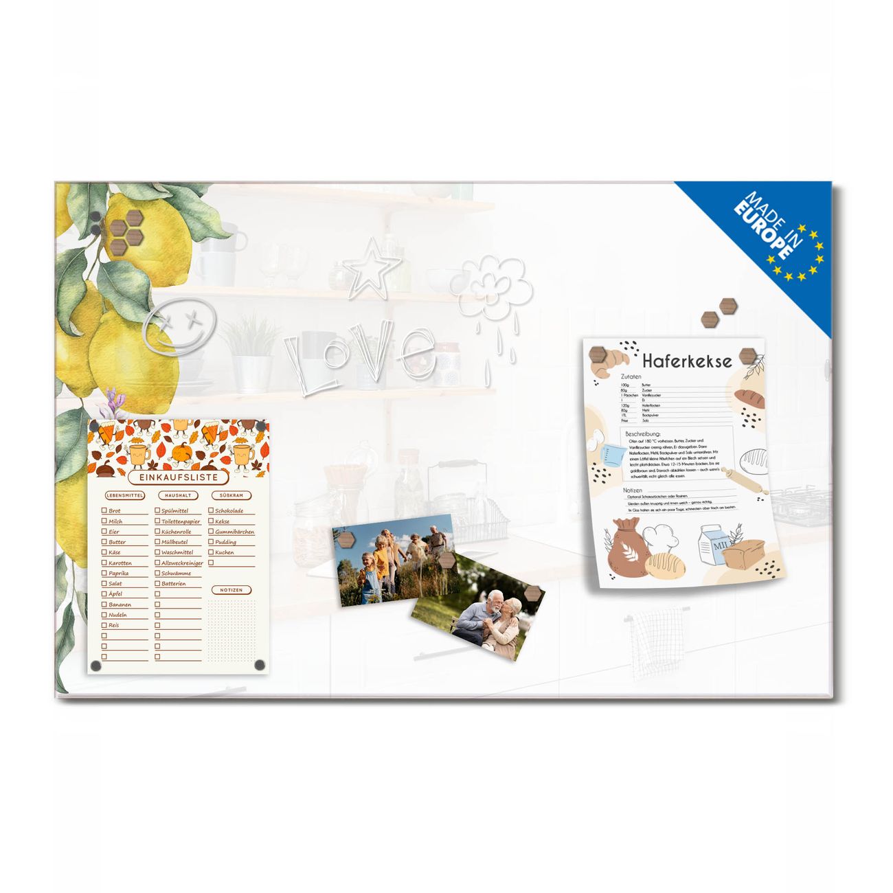 Ein Stück Design, das Ihren Alltag organisiert. Schreiben, heften, inspirieren - alles an einem Ort. Qualität, die man spürt. Montage leicht gemacht. Handwerk mit Herz - veredelt in Sachsen. Einzigartiges Design mit Motiv Motiv Zitronenzweig Aquarell Beschreibbare Glasoberfläche, leicht zu reinigen Starke Magnetkraft durch Stahlrückwand Inklusive 4 Neodym-Magneten Flexible Montageoptionen Handveredelt in Sachsen - Qualität, die bleibt
