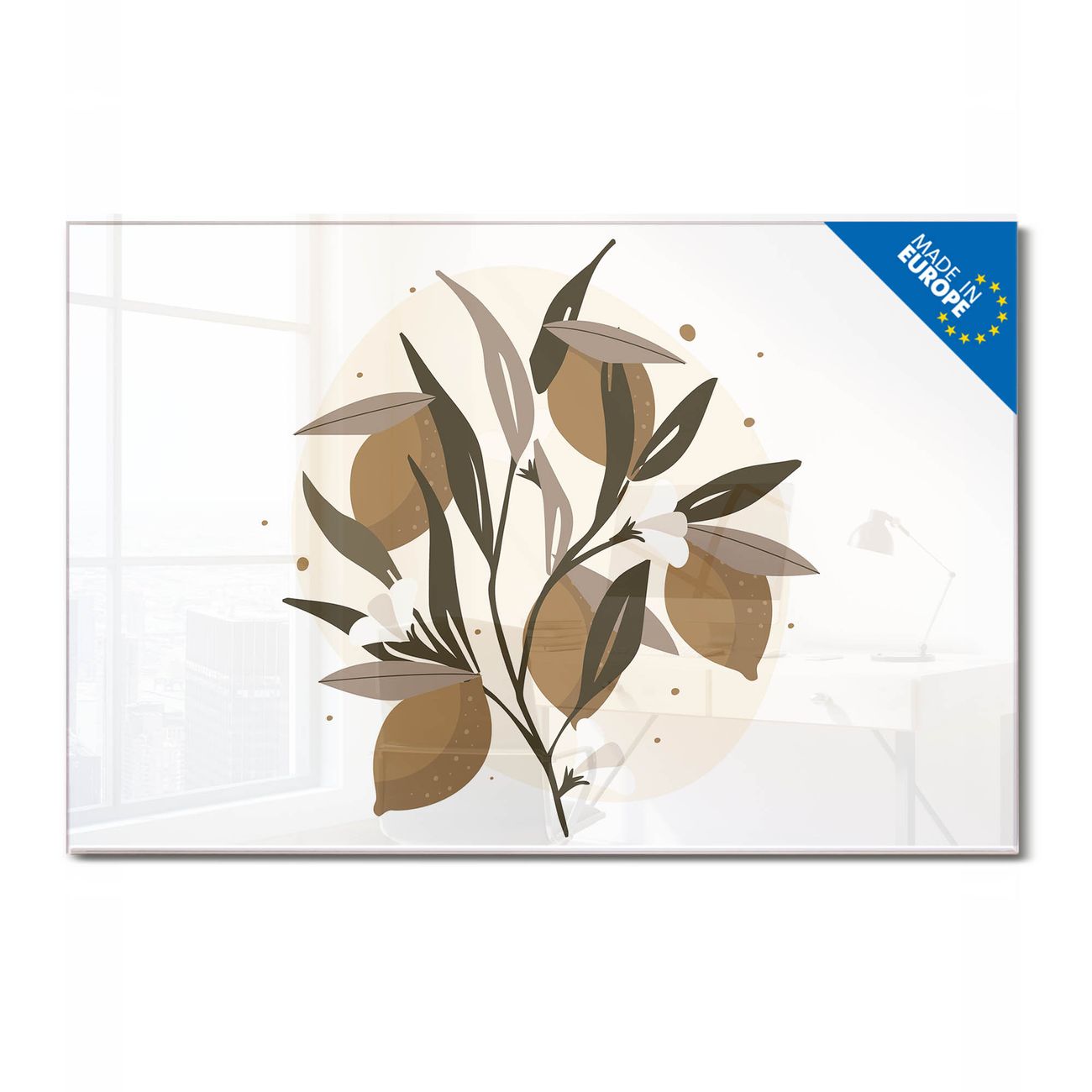 Ein Stück Design, das Ihren Alltag organisiert. Schreiben, heften, inspirieren - alles an einem Ort. Qualität, die man spürt. Montage leicht gemacht. Handwerk mit Herz - veredelt in Sachsen. Einzigartiges Design mit Motiv Motiv Zitronenzweig Illustration Beschreibbare Glasoberfläche, leicht zu reinigen Starke Magnetkraft durch Stahlrückwand Inklusive 4 Neodym-Magneten Flexible Montageoptionen Handveredelt in Sachsen - Qualität, die bleibt