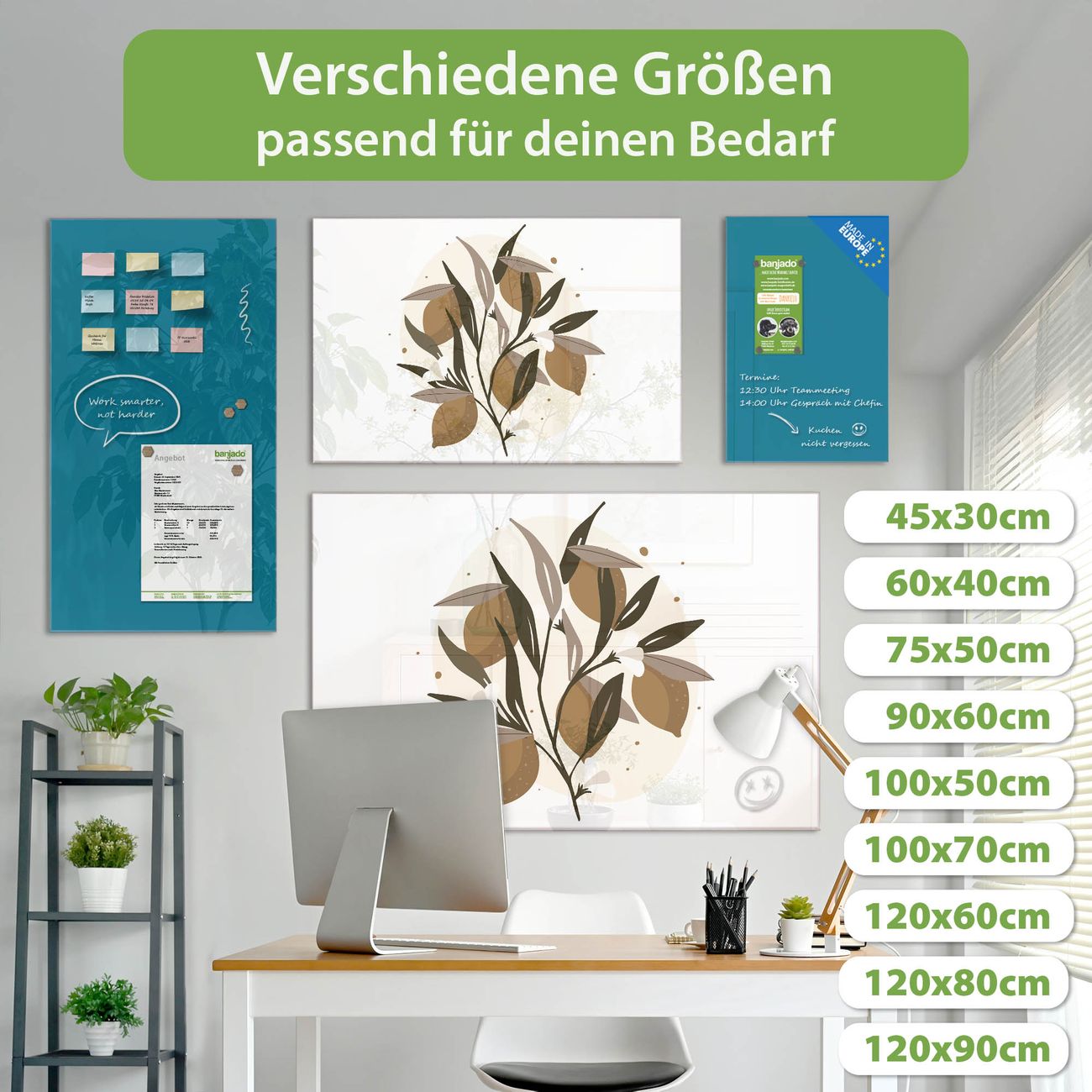 Jede Glas Magnettafel wird in unserer Werkstatt von Hand gefertigt und sorgfältig geprüft. So erhalten Sie ein echtes Qualitätsprodukt, das Funktion und Ästhetik perfekt vereint.?? Warum banjado?