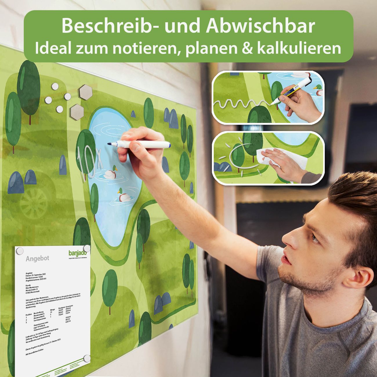 Jede Glas Magnettafel wird in unserer Werkstatt von Hand gefertigt und sorgfältig geprüft. So erhalten Sie ein echtes Qualitätsprodukt, das Funktion und Ästhetik perfekt vereint.?? Warum banjado?