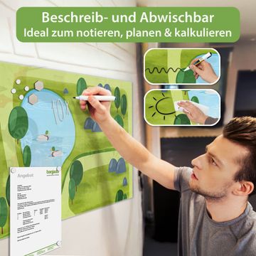 Gefertigt aus gehärtetem Sicherheitsglas mit einer magnetischen Rückwand aus Stahl überzeugt diese Magnettafel durch Stabilität und Langlebigkeit. Die Oberfläche bleibt dauerhaft brillant und pflegeleicht, selbst bei täglicher Nutzung.