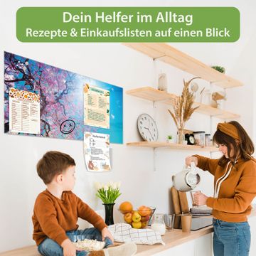 Auf der glatten Glasoberfläche lassen sich Termine, Rezepte oder Notizen ganz einfach mit Kreidestiften festhalten und rückstandslos entfernen. Starke Neodym-Magnete halten Ihre wichtigsten Erinnerungen sicher an Ort und Stelle. So entsteht Ihre ganz persönliche Ideenwand - jeden Tag neu.