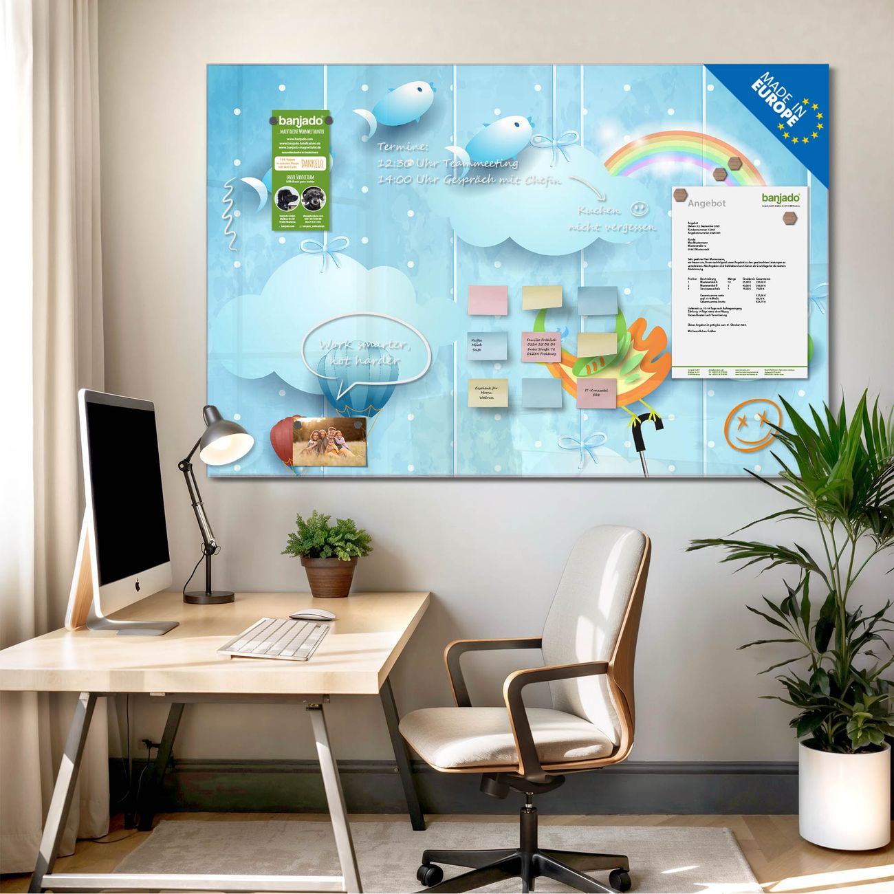 Jede Glas Magnettafel wird in unserer Werkstatt von Hand gefertigt und sorgfältig geprüft. So erhalten Sie ein echtes Qualitätsprodukt, das Funktion und Ästhetik perfekt vereint.?? Warum banjado?