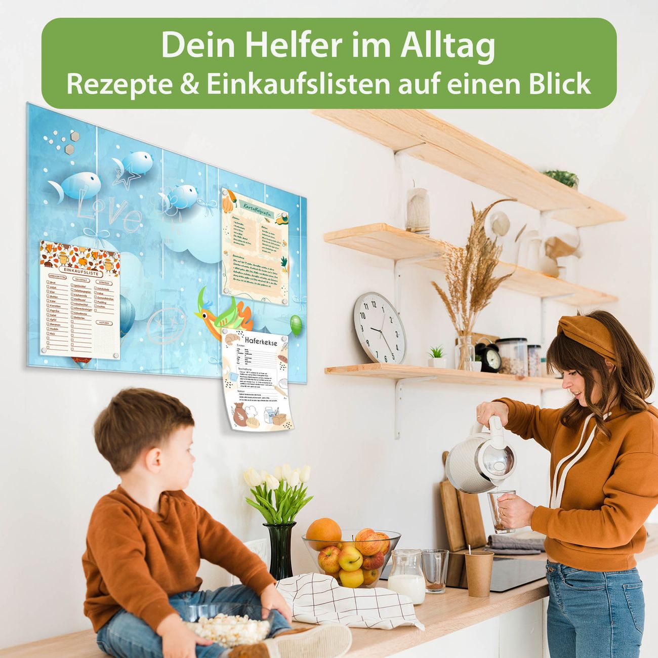 Auf der glatten Glasoberfläche lassen sich Termine, Rezepte oder Notizen ganz einfach mit Kreidestiften festhalten und rückstandslos entfernen. Starke Neodym-Magnete halten Ihre wichtigsten Erinnerungen sicher an Ort und Stelle. So entsteht Ihre ganz persönliche Ideenwand - jeden Tag neu.