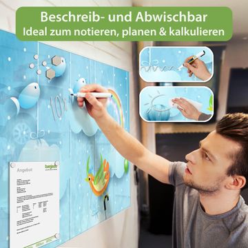 Die banjado Glas Magnettafel mit dem Motiv Motiv fliegender Regenschirm verbindet Funktionalität mit Stil. Sie ersetzt das Zettelchaos durch klare Strukturen und bringt dabei eine warme, natürliche Atmosphäre in Ihr Zuhause. Ob im Büro, in der Küche oder im Eingangsbereich - dieses Design-Board zieht Blicke an und sorgt für Ordnung mit Charakter.