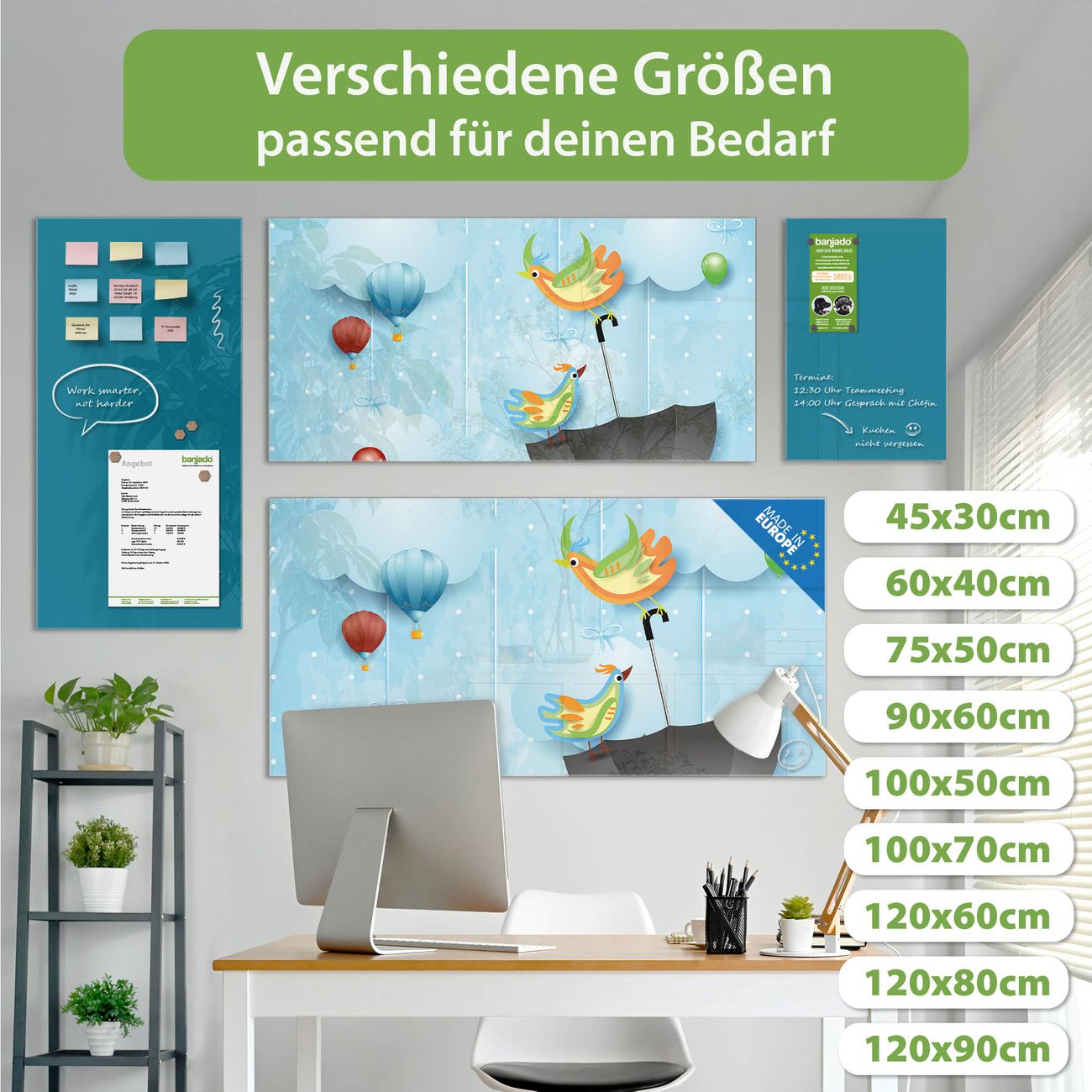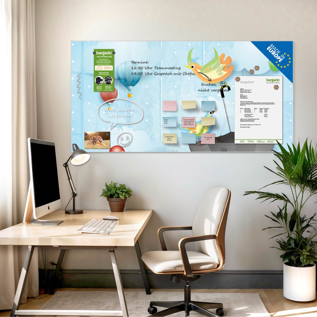 Jede Glas Magnettafel wird in unserer Werkstatt von Hand gefertigt und sorgfältig geprüft. So erhalten Sie ein echtes Qualitätsprodukt, das Funktion und Ästhetik perfekt vereint.?? Warum banjado?