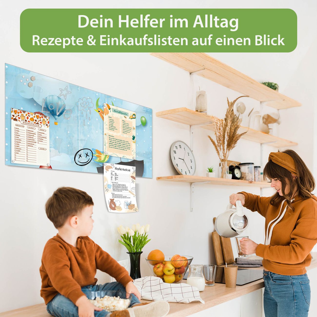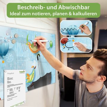 Auf der glatten Glasoberfläche lassen sich Termine, Rezepte oder Notizen ganz einfach mit Kreidestiften festhalten und rückstandslos entfernen. Starke Neodym-Magnete halten Ihre wichtigsten Erinnerungen sicher an Ort und Stelle. So entsteht Ihre ganz persönliche Ideenwand - jeden Tag neu.