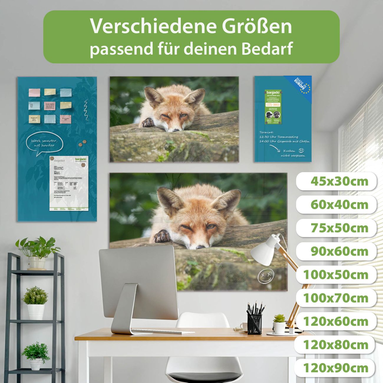Jede Glas Magnettafel wird in unserer Werkstatt von Hand gefertigt und sorgfältig geprüft. So erhalten Sie ein echtes Qualitätsprodukt, das Funktion und Ästhetik perfekt vereint.?? Warum banjado?