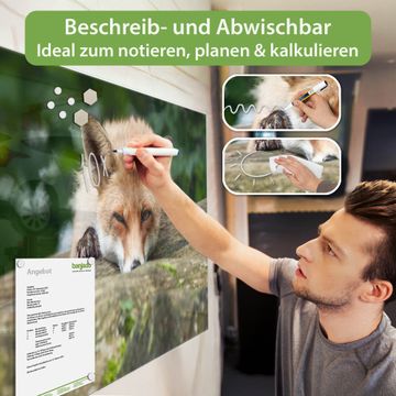 Die banjado Glas Magnettafel mit dem Motiv Motiv Fuchs Relax verbindet Funktionalität mit Stil. Sie ersetzt das Zettelchaos durch klare Strukturen und bringt dabei eine warme, natürliche Atmosphäre in Ihr Zuhause. Ob im Büro, in der Küche oder im Eingangsbereich - dieses Design-Board zieht Blicke an und sorgt für Ordnung mit Charakter.