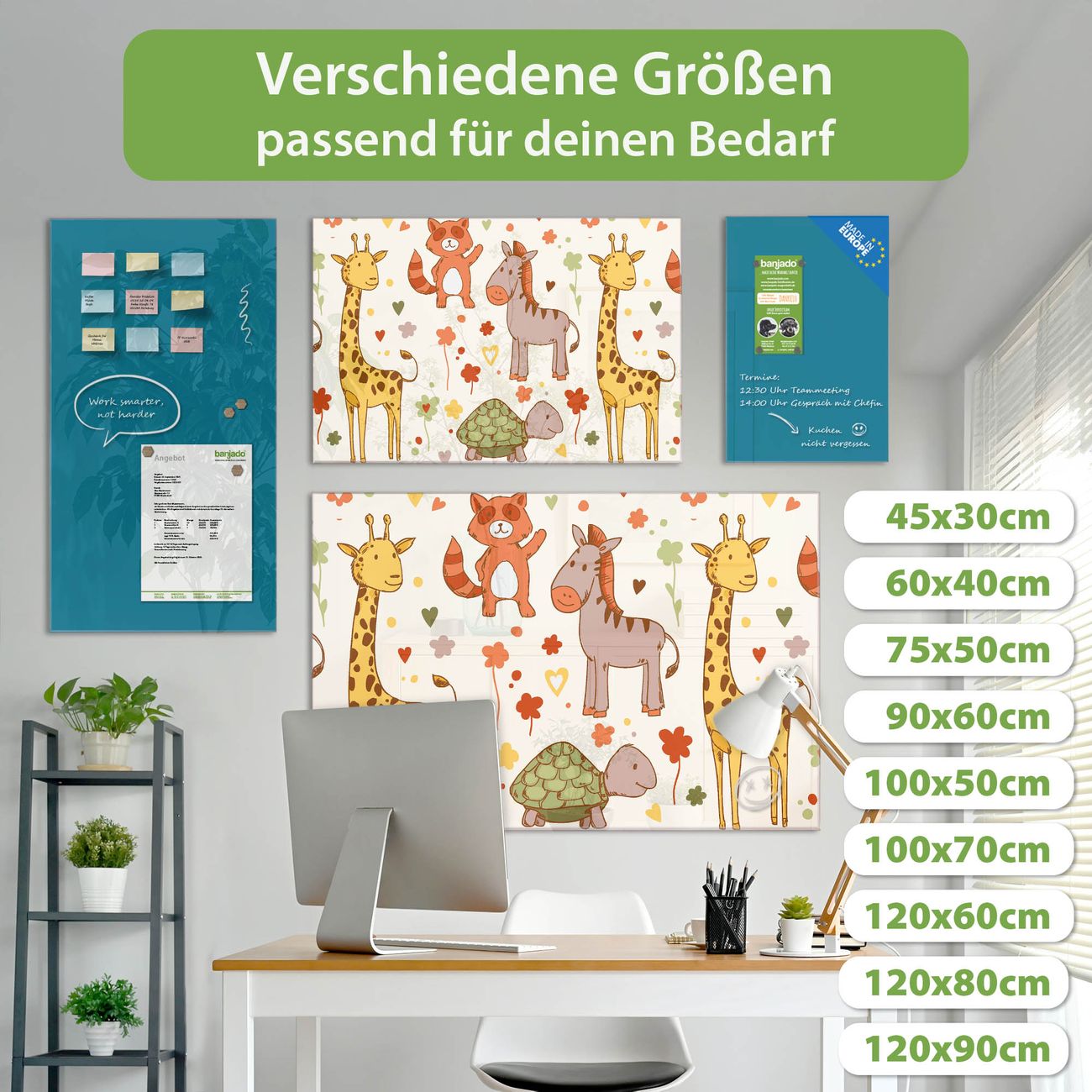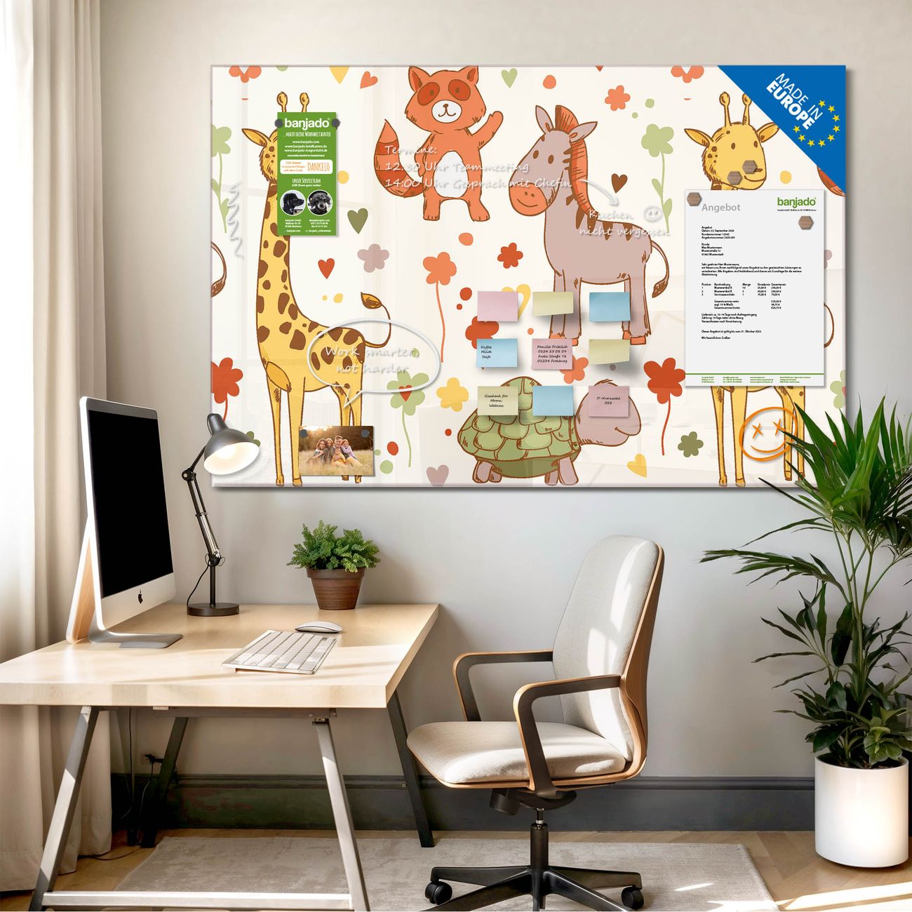 Die banjado Glas Magnettafel mit dem Motiv Motiv Giraffe & Co verbindet Funktionalität mit Stil. Sie ersetzt das Zettelchaos durch klare Strukturen und bringt dabei eine warme, natürliche Atmosphäre in Ihr Zuhause. Ob im Büro, in der Küche oder im Eingangsbereich - dieses Design-Board zieht Blicke an und sorgt für Ordnung mit Charakter.