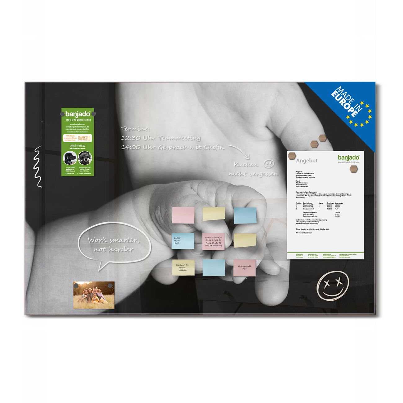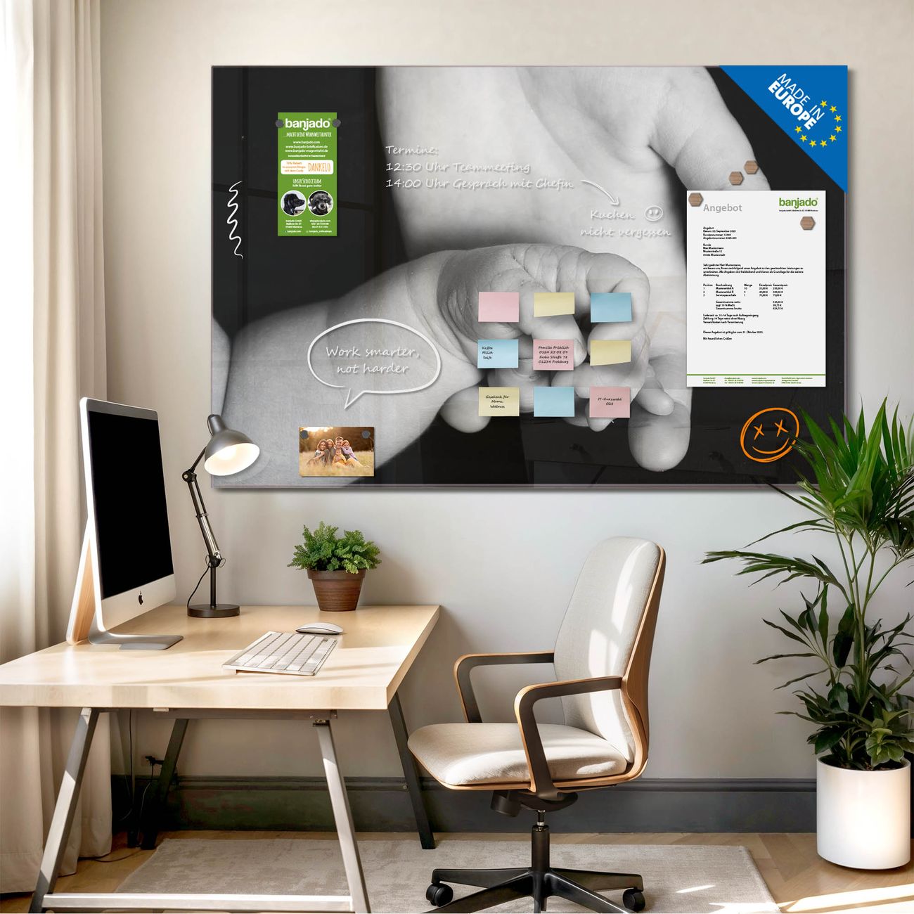 Jede Glas Magnettafel wird in unserer Werkstatt von Hand gefertigt und sorgfältig geprüft. So erhalten Sie ein echtes Qualitätsprodukt, das Funktion und Ästhetik perfekt vereint.?? Warum banjado?