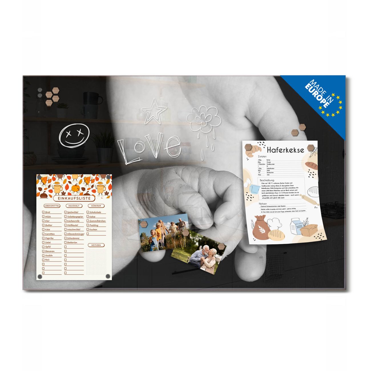 Ein Stück Design, das Ihren Alltag organisiert. Schreiben, heften, inspirieren - alles an einem Ort. Qualität, die man spürt. Montage leicht gemacht. Handwerk mit Herz - veredelt in Sachsen. Einzigartiges Design mit Motiv Motiv Hands Beschreibbare Glasoberfläche, leicht zu reinigen Starke Magnetkraft durch Stahlrückwand Inklusive 4 Neodym-Magneten Flexible Montageoptionen Handveredelt in Sachsen - Qualität, die bleibt