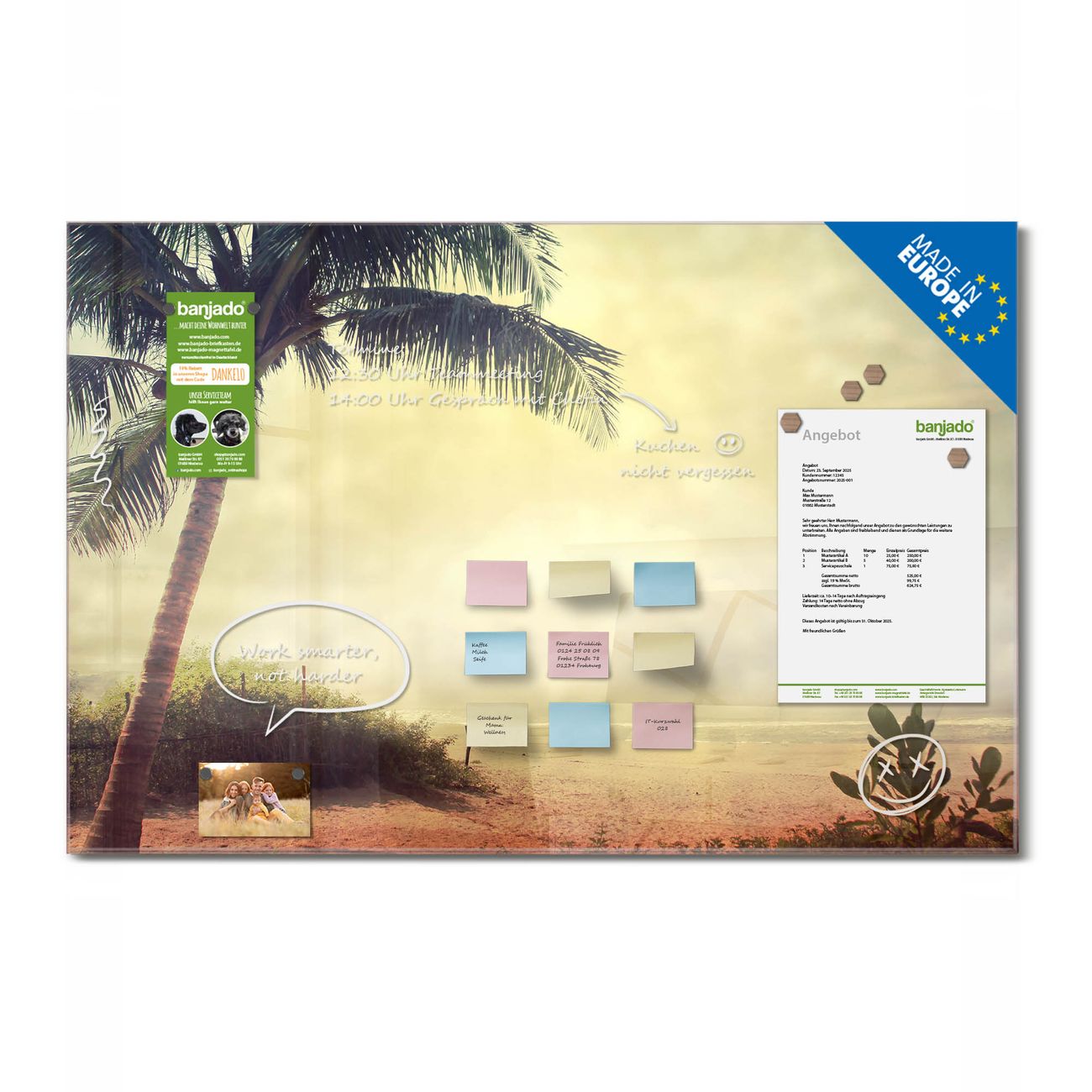 Glas Magnettafel im Querformat Motiv Palme am Strand