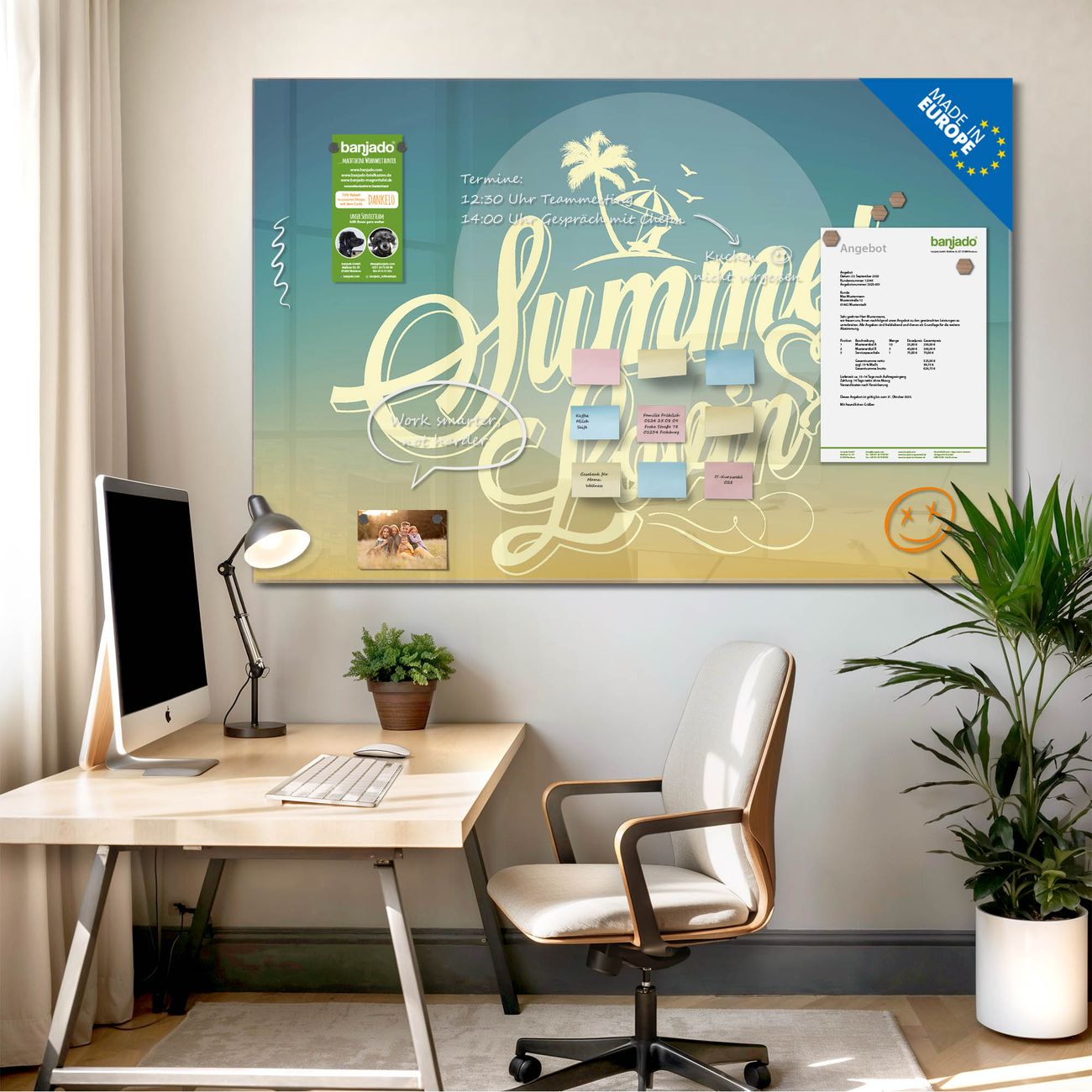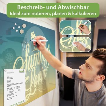 Die banjado Glas Magnettafel mit dem Motiv Motiv Sommer Lovin verbindet Funktionalität mit Stil. Sie ersetzt das Zettelchaos durch klare Strukturen und bringt dabei eine warme, natürliche Atmosphäre in Ihr Zuhause. Ob im Büro, in der Küche oder im Eingangsbereich - dieses Design-Board zieht Blicke an und sorgt für Ordnung mit Charakter.