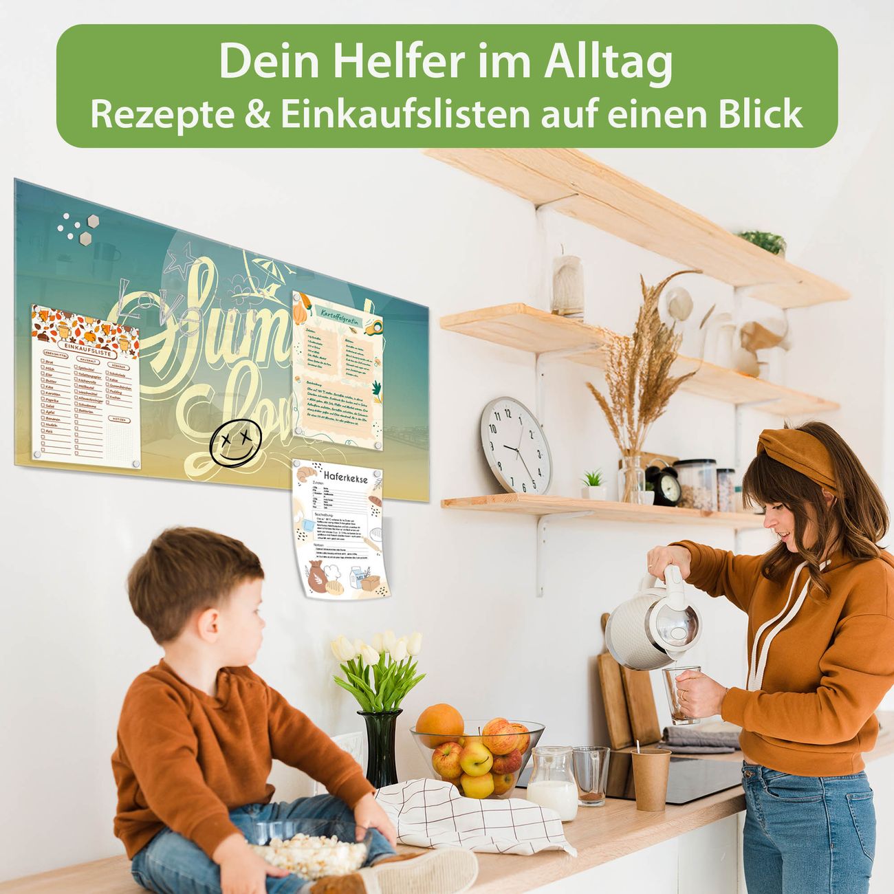Ein Stück Design, das Ihren Alltag organisiert. Schreiben, heften, inspirieren - alles an einem Ort. Qualität, die man spürt. Montage leicht gemacht. Handwerk mit Herz - veredelt in Sachsen. Einzigartiges Design mit Motiv Motiv Sommer Lovin Beschreibbare Glasoberfläche, leicht zu reinigen Starke Magnetkraft durch Stahlrückwand Inklusive 4 Neodym-Magneten Flexible Montageoptionen Handveredelt in Sachsen - Qualität, die bleibt