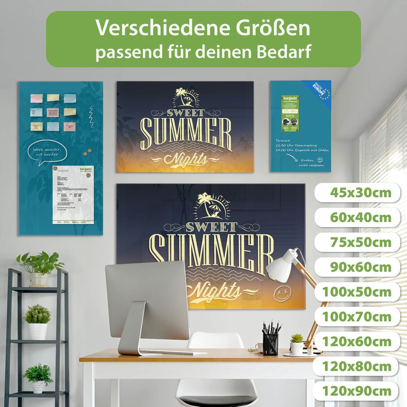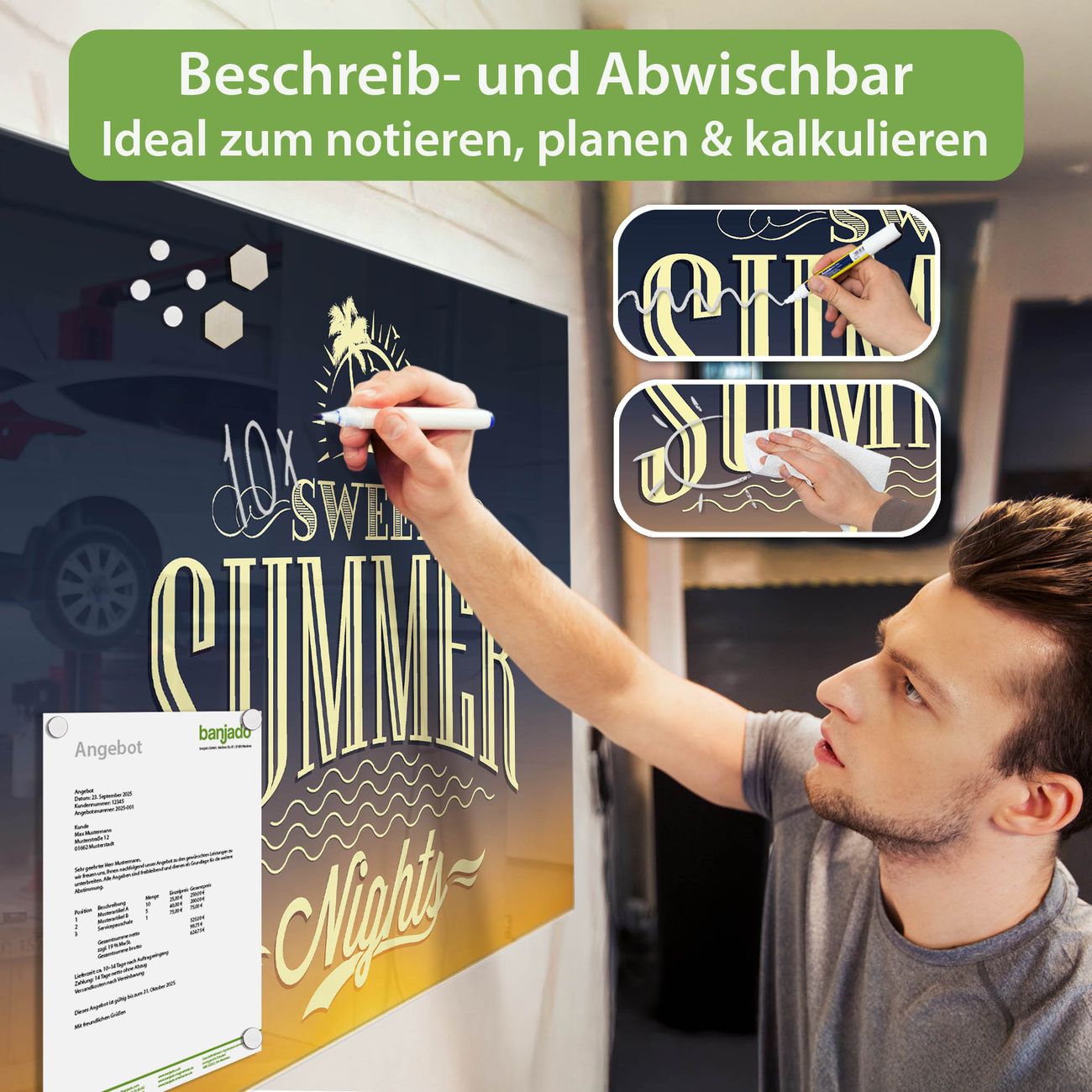 Jede Glas Magnettafel wird in unserer Werkstatt von Hand gefertigt und sorgfältig geprüft. So erhalten Sie ein echtes Qualitätsprodukt, das Funktion und Ästhetik perfekt vereint.?? Warum banjado?