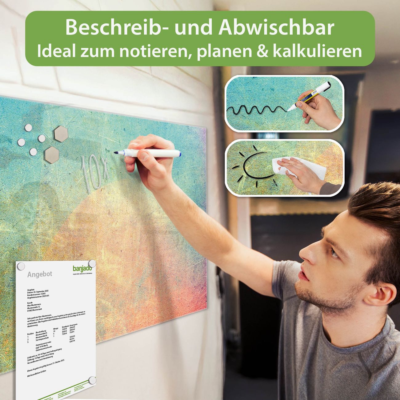 Die banjado Glas Magnettafel mit dem Motiv Motiv Zerkratzt 2 verbindet Funktionalität mit Stil. Sie ersetzt das Zettelchaos durch klare Strukturen und bringt dabei eine warme, natürliche Atmosphäre in Ihr Zuhause. Ob im Büro, in der Küche oder im Eingangsbereich - dieses Design-Board zieht Blicke an und sorgt für Ordnung mit Charakter.