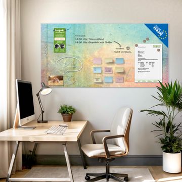 Auf der glatten Glasoberfläche lassen sich Termine, Rezepte oder Notizen ganz einfach mit Kreidestiften festhalten und rückstandslos entfernen. Starke Neodym-Magnete halten Ihre wichtigsten Erinnerungen sicher an Ort und Stelle. So entsteht Ihre ganz persönliche Ideenwand - jeden Tag neu.