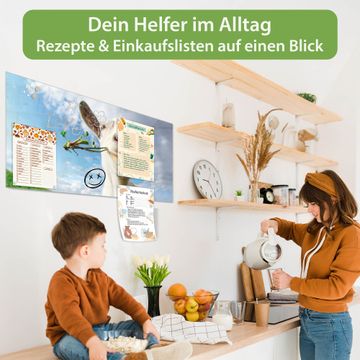 Auf der glatten Glasoberfläche lassen sich Termine, Rezepte oder Notizen ganz einfach mit Kreidestiften festhalten und rückstandslos entfernen. Starke Neodym-Magnete halten Ihre wichtigsten Erinnerungen sicher an Ort und Stelle. So entsteht Ihre ganz persönliche Ideenwand - jeden Tag neu.