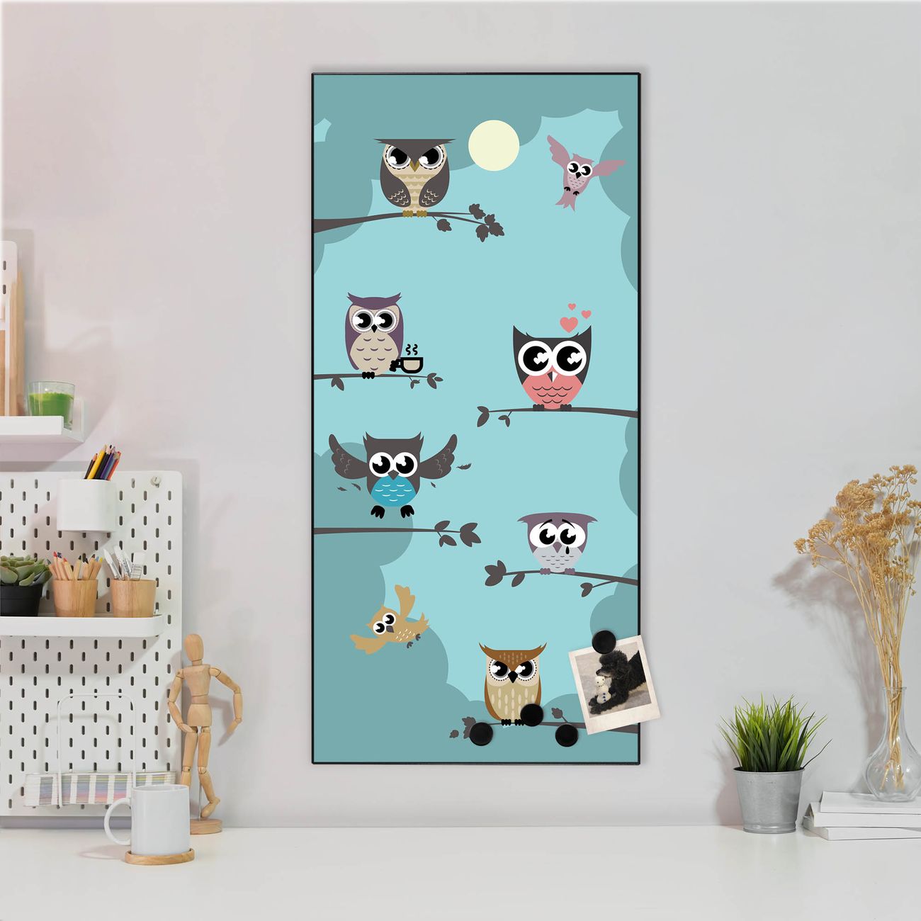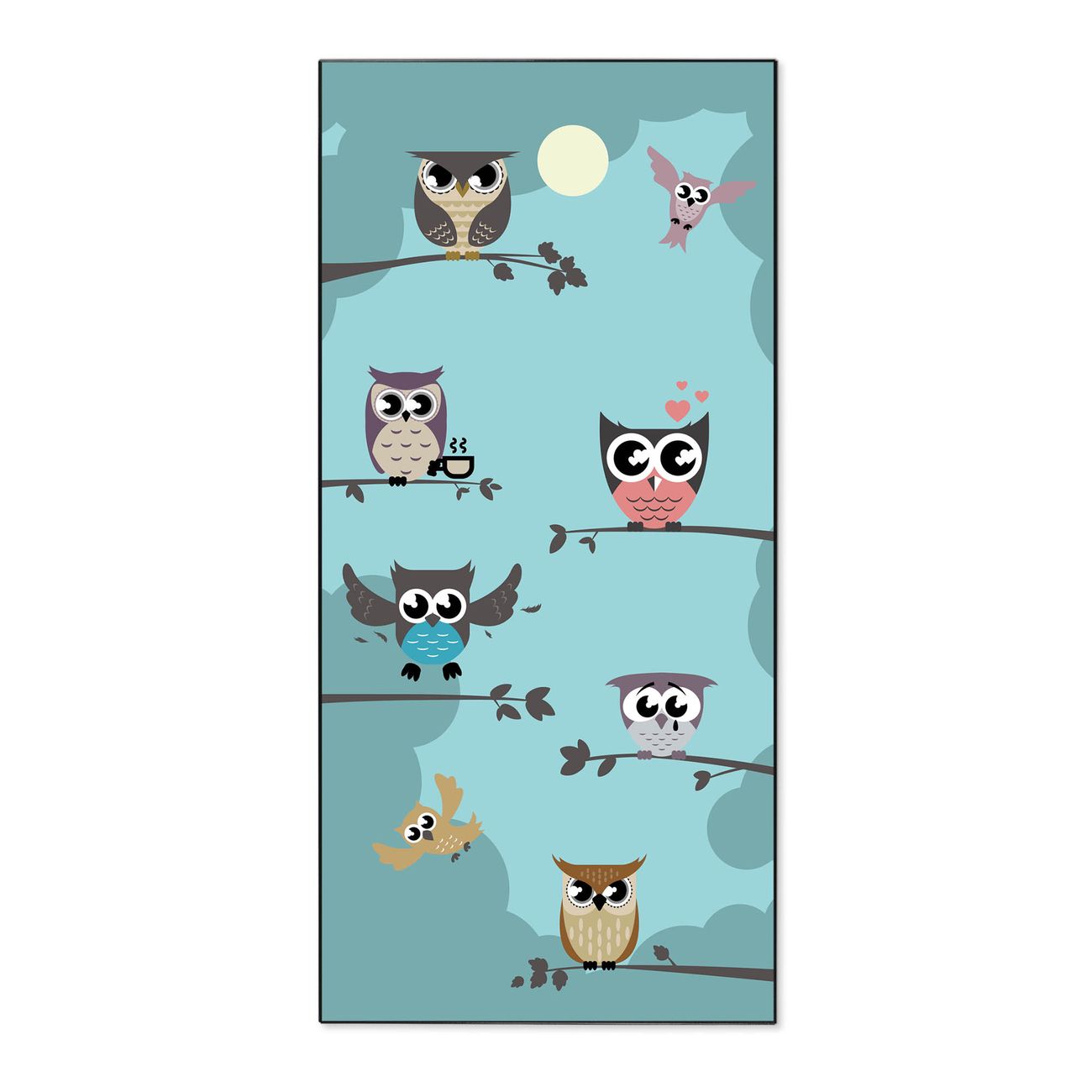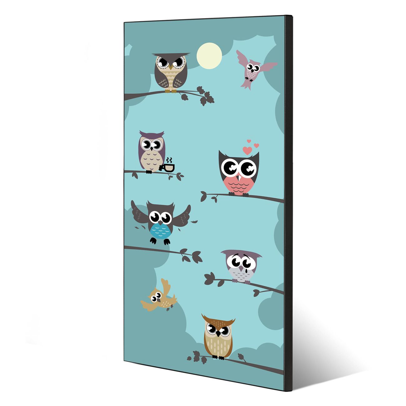 Stahl Magnettafel Hochformat 78x37cm Acht Eulen