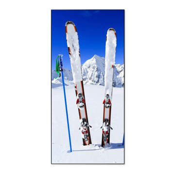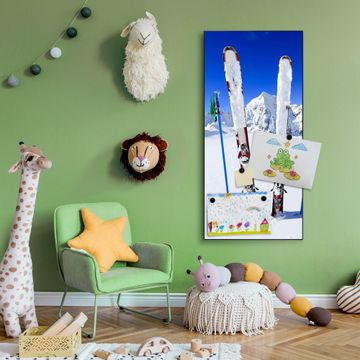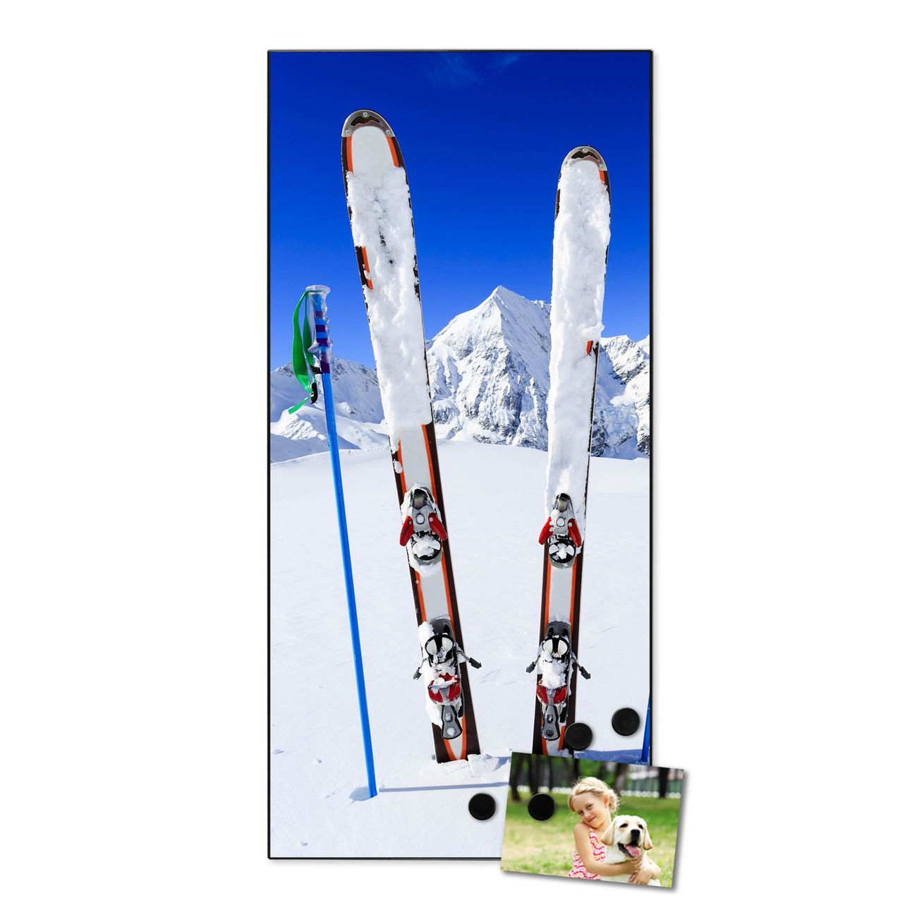 FUNKTION:  Die banjado Magnettafel mit Motiv Apres Ski Motiv bringt Ordnung in Ihr Zettelchaos. Fotos, Termine, Notizen oder Rezepte lassen Sich hier stilvoll mit Magneten ordnen, Sie behalten alles im Blick. An der Design Magnettafel halten alle handesüblichen Magnete. DESIGN:  Die magnetische Pinnwand mit dem Motiv Motiv Apres Ski ist ein eleganter Begleiter im Alltag. Mit dieser Memotafel aus Metall haben Sie auch ohne Notizen und Magnete ein schönes Dekoelement. Das Format bietet Ihnen ausreichend Platz um alle wichtigen Informationen im Blick zu behalten. DETAILS:  Die Magnettafel besteht aus silber-grau, weiß oder schwarzlackiertem Stahl. Sie hat eine Größe von 37 x 78 x 2cm. Es befinden sich auf der Rückseite vorgefertigte Aufhängungen die eine schnelle und unkomplizierte Anbringung ermöglichen. Das Motiv ist mit einem seidenmatten Laminat versehen und schützt so zusätzlich vor Kratzern. NUTZEN:  Sie können dieses Memoboard groß als Wandbild nutzen, es halten alle handelsüblichen Magneten daran. Die Pinnwand ist mit einem feuchten Lappen oder Schwamm abwischbar. Sie finden bei uns eine große Auswahl an passenden Magneten. BANJADO:  Wir sind ein kleines Team aus dem Herzen von Sachsen. Wir fertigen alle Artikel von Hand für Sie an, Sie erhalten keine preiswerte Importware. Auf Wunsch können Sie auch Ihr eigenes Foto auf die Magnettafel aufbringen, schreiben Sie uns an. Herzlichst, Ihr banjado-Team