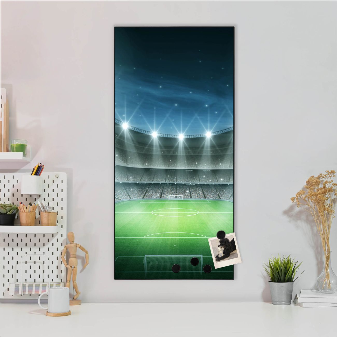 FUNKTION:  Die banjado Magnettafel mit Motiv Arena Motiv bringt Ordnung in Ihr Zettelchaos. Fotos, Termine, Notizen oder Rezepte lassen Sich hier stilvoll mit Magneten ordnen, Sie behalten alles im Blick. An der Design Magnettafel halten alle handesüblichen Magnete. DESIGN:  Die magnetische Pinnwand mit dem Motiv Motiv Arena ist ein eleganter Begleiter im Alltag. Mit dieser Memotafel aus Metall haben Sie auch ohne Notizen und Magnete ein schönes Dekoelement. Das Format bietet Ihnen ausreichend Platz um alle wichtigen Informationen im Blick zu behalten. DETAILS:  Die Magnettafel besteht aus silber-grau, weiß oder schwarzlackiertem Stahl. Sie hat eine Größe von 37 x 78 x 2cm. Es befinden sich auf der Rückseite vorgefertigte Aufhängungen die eine schnelle und unkomplizierte Anbringung ermöglichen. Das Motiv ist mit einem seidenmatten Laminat versehen und schützt so zusätzlich vor Kratzern. NUTZEN:  Sie können dieses Memoboard groß als Wandbild nutzen, es halten alle handelsüblichen Magneten daran. Die Pinnwand ist mit einem feuchten Lappen oder Schwamm abwischbar. Sie finden bei uns eine große Auswahl an passenden Magneten. BANJADO:  Wir sind ein kleines Team aus dem Herzen von Sachsen. Wir fertigen alle Artikel von Hand für Sie an, Sie erhalten keine preiswerte Importware. Auf Wunsch können Sie auch Ihr eigenes Foto auf die Magnettafel aufbringen, schreiben Sie uns an. Herzlichst, Ihr banjado-Team