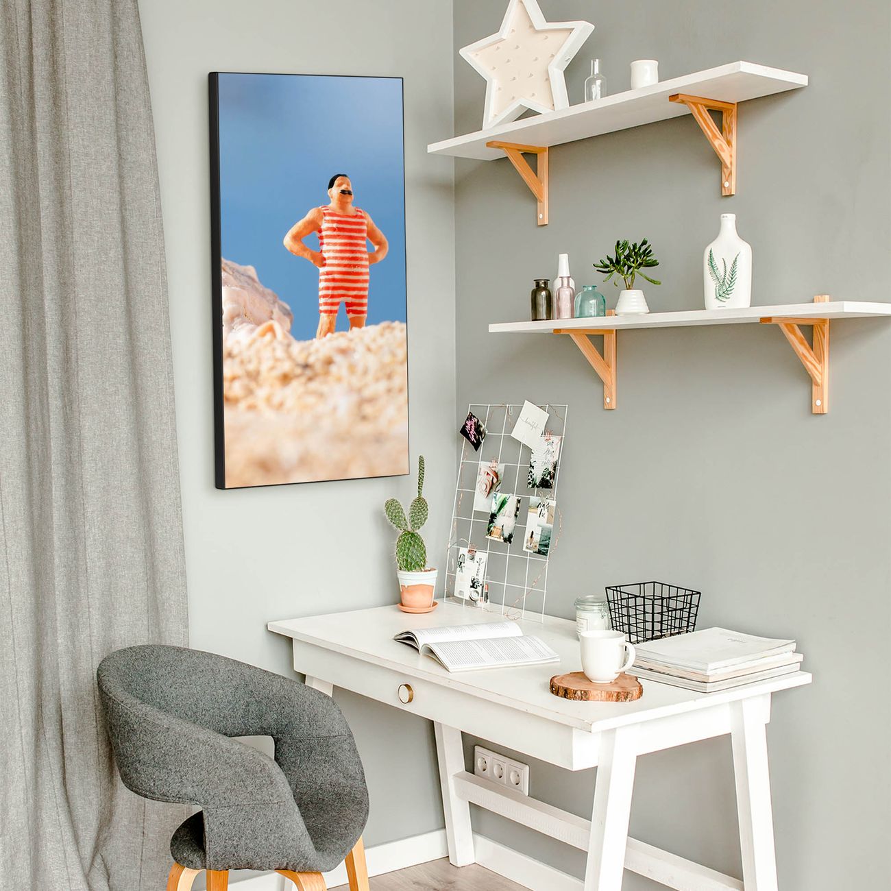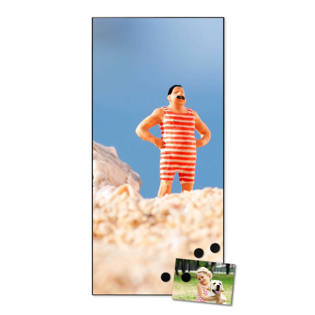 FUNKTION:  Die banjado Magnettafel mit Motiv Bademeister Motiv bringt Ordnung in Ihr Zettelchaos. Fotos, Termine, Notizen oder Rezepte lassen Sich hier stilvoll mit Magneten ordnen, Sie behalten alles im Blick. An der Design Magnettafel halten alle handesüblichen Magnete. DESIGN:  Die magnetische Pinnwand mit dem Motiv Motiv Bademeister ist ein eleganter Begleiter im Alltag. Mit dieser Memotafel aus Metall haben Sie auch ohne Notizen und Magnete ein schönes Dekoelement. Das Format bietet Ihnen ausreichend Platz um alle wichtigen Informationen im Blick zu behalten. DETAILS:  Die Magnettafel besteht aus silber-grau, weiß oder schwarzlackiertem Stahl. Sie hat eine Größe von 37 x 78 x 2cm. Es befinden sich auf der Rückseite vorgefertigte Aufhängungen die eine schnelle und unkomplizierte Anbringung ermöglichen. Das Motiv ist mit einem seidenmatten Laminat versehen und schützt so zusätzlich vor Kratzern. NUTZEN:  Sie können dieses Memoboard groß als Wandbild nutzen, es halten alle handelsüblichen Magneten daran. Die Pinnwand ist mit einem feuchten Lappen oder Schwamm abwischbar. Sie finden bei uns eine große Auswahl an passenden Magneten. BANJADO:  Wir sind ein kleines Team aus dem Herzen von Sachsen. Wir fertigen alle Artikel von Hand für Sie an, Sie erhalten keine preiswerte Importware. Auf Wunsch können Sie auch Ihr eigenes Foto auf die Magnettafel aufbringen, schreiben Sie uns an. Herzlichst, Ihr banjado-Team