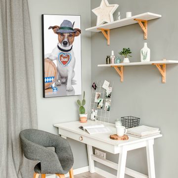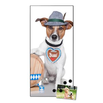 FUNKTION:  Die banjado Magnettafel mit Motiv Bayer Jack Russel Motiv bringt Ordnung in Ihr Zettelchaos. Fotos, Termine, Notizen oder Rezepte lassen Sich hier stilvoll mit Magneten ordnen, Sie behalten alles im Blick. An der Design Magnettafel halten alle handesüblichen Magnete. DESIGN:  Die magnetische Pinnwand mit dem Motiv Motiv Bayer Jack Russel ist ein eleganter Begleiter im Alltag. Mit dieser Memotafel aus Metall haben Sie auch ohne Notizen und Magnete ein schönes Dekoelement. Das Format bietet Ihnen ausreichend Platz um alle wichtigen Informationen im Blick zu behalten. DETAILS:  Die Magnettafel besteht aus silber-grau, weiß oder schwarzlackiertem Stahl. Sie hat eine Größe von 37 x 78 x 2cm. Es befinden sich auf der Rückseite vorgefertigte Aufhängungen die eine schnelle und unkomplizierte Anbringung ermöglichen. Das Motiv ist mit einem seidenmatten Laminat versehen und schützt so zusätzlich vor Kratzern. NUTZEN:  Sie können dieses Memoboard groß als Wandbild nutzen, es halten alle handelsüblichen Magneten daran. Die Pinnwand ist mit einem feuchten Lappen oder Schwamm abwischbar. Sie finden bei uns eine große Auswahl an passenden Magneten. BANJADO:  Wir sind ein kleines Team aus dem Herzen von Sachsen. Wir fertigen alle Artikel von Hand für Sie an, Sie erhalten keine preiswerte Importware. Auf Wunsch können Sie auch Ihr eigenes Foto auf die Magnettafel aufbringen, schreiben Sie uns an. Herzlichst, Ihr banjado-Team