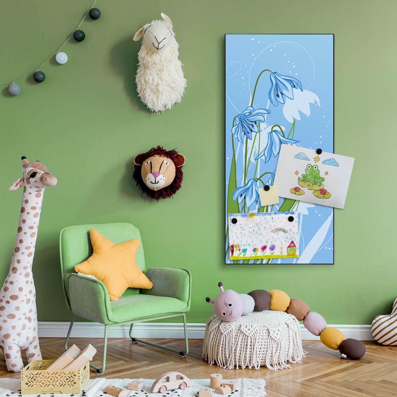FUNKTION:  Die banjado Magnettafel mit Motiv Bergblaulilie Motiv bringt Ordnung in Ihr Zettelchaos. Fotos, Termine, Notizen oder Rezepte lassen Sich hier stilvoll mit Magneten ordnen, Sie behalten alles im Blick. An der Design Magnettafel halten alle handesüblichen Magnete. DESIGN:  Die magnetische Pinnwand mit dem Motiv Motiv Bergblaulilie ist ein eleganter Begleiter im Alltag. Mit dieser Memotafel aus Metall haben Sie auch ohne Notizen und Magnete ein schönes Dekoelement. Das Format bietet Ihnen ausreichend Platz um alle wichtigen Informationen im Blick zu behalten. DETAILS:  Die Magnettafel besteht aus silber-grau, weiß oder schwarzlackiertem Stahl. Sie hat eine Größe von 37 x 78 x 2cm. Es befinden sich auf der Rückseite vorgefertigte Aufhängungen die eine schnelle und unkomplizierte Anbringung ermöglichen. Das Motiv ist mit einem seidenmatten Laminat versehen und schützt so zusätzlich vor Kratzern. NUTZEN:  Sie können dieses Memoboard groß als Wandbild nutzen, es halten alle handelsüblichen Magneten daran. Die Pinnwand ist mit einem feuchten Lappen oder Schwamm abwischbar. Sie finden bei uns eine große Auswahl an passenden Magneten. BANJADO:  Wir sind ein kleines Team aus dem Herzen von Sachsen. Wir fertigen alle Artikel von Hand für Sie an, Sie erhalten keine preiswerte Importware. Auf Wunsch können Sie auch Ihr eigenes Foto auf die Magnettafel aufbringen, schreiben Sie uns an. Herzlichst, Ihr banjado-Team