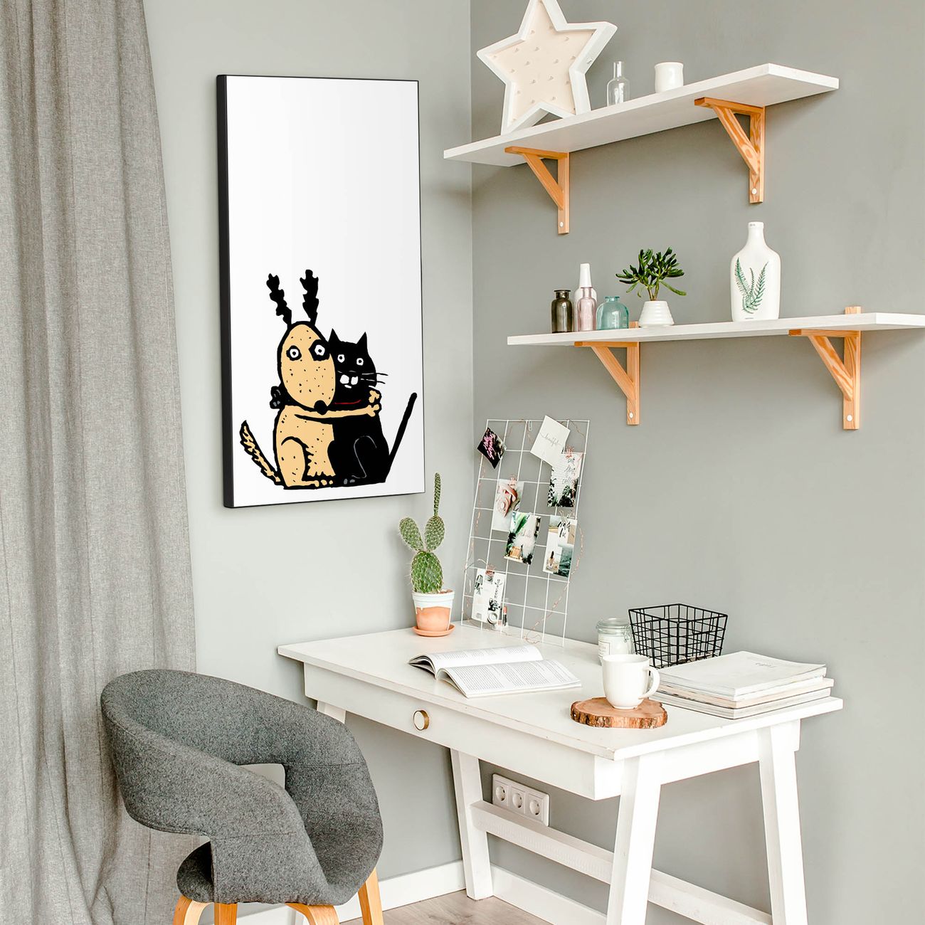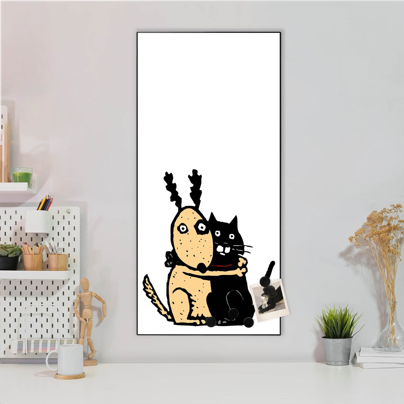 FUNKTION:  Die banjado Magnettafel mit Motiv Beste Freunde Immer Motiv bringt Ordnung in Ihr Zettelchaos. Fotos, Termine, Notizen oder Rezepte lassen Sich hier stilvoll mit Magneten ordnen, Sie behalten alles im Blick. An der Design Magnettafel halten alle handesüblichen Magnete. DESIGN:  Die magnetische Pinnwand mit dem Motiv Motiv Beste Freunde Immer ist ein eleganter Begleiter im Alltag. Mit dieser Memotafel aus Metall haben Sie auch ohne Notizen und Magnete ein schönes Dekoelement. Das Format bietet Ihnen ausreichend Platz um alle wichtigen Informationen im Blick zu behalten. DETAILS:  Die Magnettafel besteht aus silber-grau, weiß oder schwarzlackiertem Stahl. Sie hat eine Größe von 37 x 78 x 2cm. Es befinden sich auf der Rückseite vorgefertigte Aufhängungen die eine schnelle und unkomplizierte Anbringung ermöglichen. Das Motiv ist mit einem seidenmatten Laminat versehen und schützt so zusätzlich vor Kratzern. NUTZEN:  Sie können dieses Memoboard groß als Wandbild nutzen, es halten alle handelsüblichen Magneten daran. Die Pinnwand ist mit einem feuchten Lappen oder Schwamm abwischbar. Sie finden bei uns eine große Auswahl an passenden Magneten. BANJADO:  Wir sind ein kleines Team aus dem Herzen von Sachsen. Wir fertigen alle Artikel von Hand für Sie an, Sie erhalten keine preiswerte Importware. Auf Wunsch können Sie auch Ihr eigenes Foto auf die Magnettafel aufbringen, schreiben Sie uns an. Herzlichst, Ihr banjado-Team