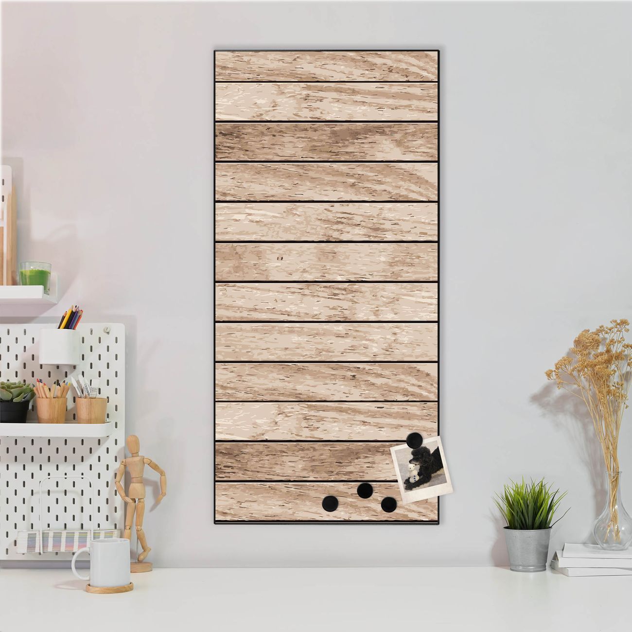 Stahl Magnettafel Hochformat 78x37cm Blasse Holzlatten