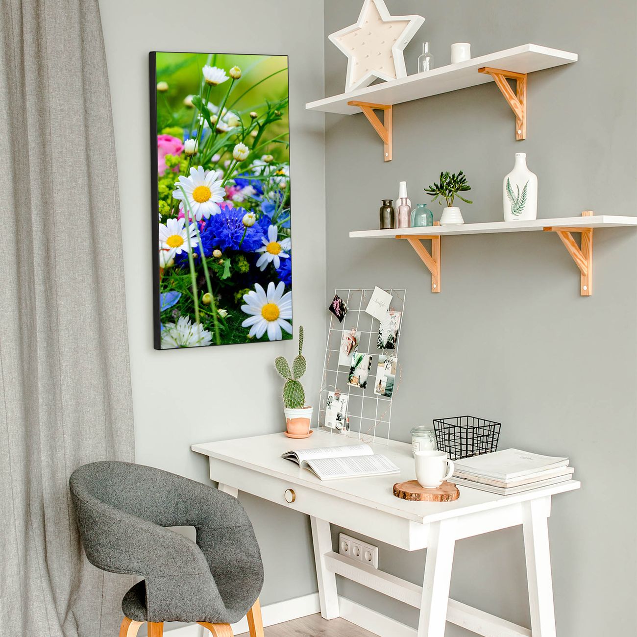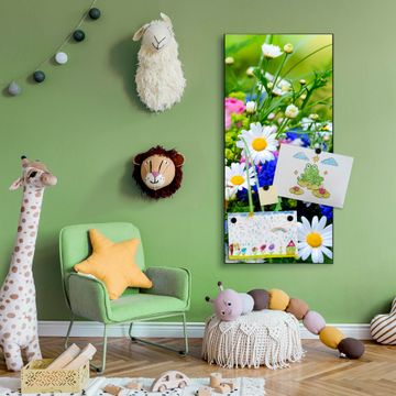 FUNKTION:  Die banjado Magnettafel mit Motiv Blumenstrauß Motiv bringt Ordnung in Ihr Zettelchaos. Fotos, Termine, Notizen oder Rezepte lassen Sich hier stilvoll mit Magneten ordnen, Sie behalten alles im Blick. An der Design Magnettafel halten alle handesüblichen Magnete. DESIGN:  Die magnetische Pinnwand mit dem Motiv Motiv Blumenstrauß ist ein eleganter Begleiter im Alltag. Mit dieser Memotafel aus Metall haben Sie auch ohne Notizen und Magnete ein schönes Dekoelement. Das Format bietet Ihnen ausreichend Platz um alle wichtigen Informationen im Blick zu behalten. DETAILS:  Die Magnettafel besteht aus silber-grau, weiß oder schwarzlackiertem Stahl. Sie hat eine Größe von 37 x 78 x 2cm. Es befinden sich auf der Rückseite vorgefertigte Aufhängungen die eine schnelle und unkomplizierte Anbringung ermöglichen. Das Motiv ist mit einem seidenmatten Laminat versehen und schützt so zusätzlich vor Kratzern. NUTZEN:  Sie können dieses Memoboard groß als Wandbild nutzen, es halten alle handelsüblichen Magneten daran. Die Pinnwand ist mit einem feuchten Lappen oder Schwamm abwischbar. Sie finden bei uns eine große Auswahl an passenden Magneten. BANJADO:  Wir sind ein kleines Team aus dem Herzen von Sachsen. Wir fertigen alle Artikel von Hand für Sie an, Sie erhalten keine preiswerte Importware. Auf Wunsch können Sie auch Ihr eigenes Foto auf die Magnettafel aufbringen, schreiben Sie uns an. Herzlichst, Ihr banjado-Team