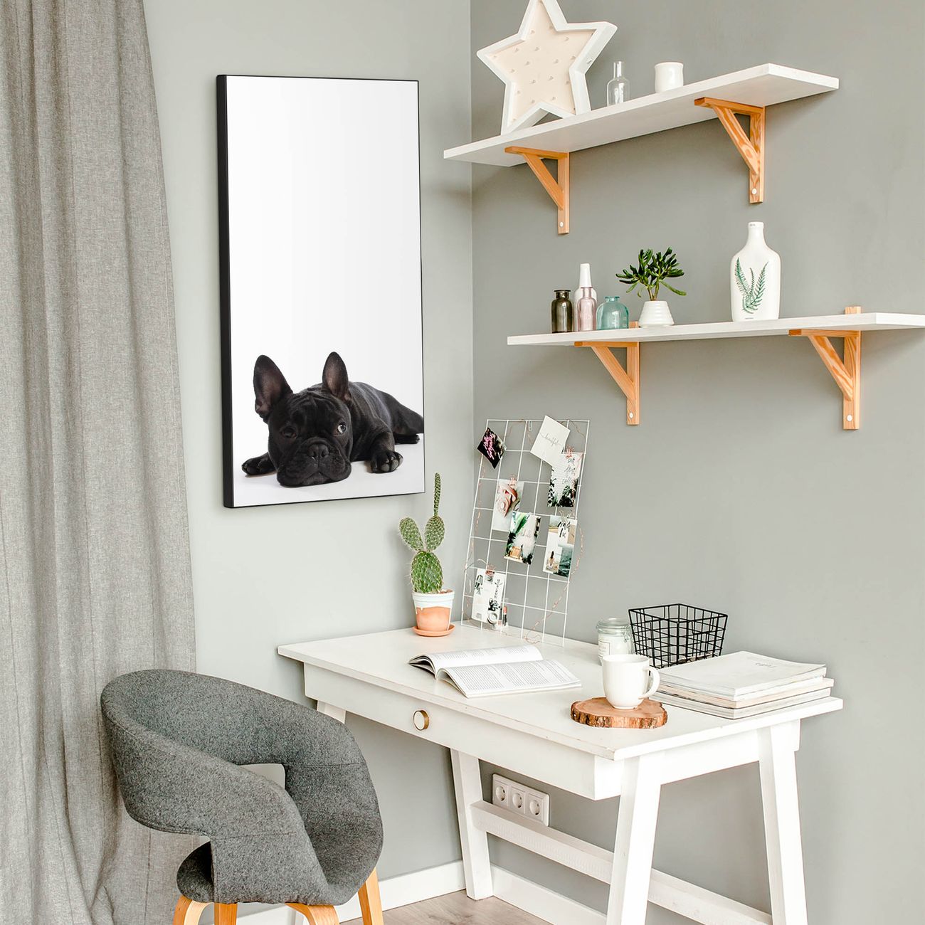 FUNKTION:  Die banjado Magnettafel mit Motiv Bulldogge Motiv bringt Ordnung in Ihr Zettelchaos. Fotos, Termine, Notizen oder Rezepte lassen Sich hier stilvoll mit Magneten ordnen, Sie behalten alles im Blick. An der Design Magnettafel halten alle handesüblichen Magnete. DESIGN:  Die magnetische Pinnwand mit dem Motiv Motiv Bulldogge ist ein eleganter Begleiter im Alltag. Mit dieser Memotafel aus Metall haben Sie auch ohne Notizen und Magnete ein schönes Dekoelement. Das Format bietet Ihnen ausreichend Platz um alle wichtigen Informationen im Blick zu behalten. DETAILS:  Die Magnettafel besteht aus silber-grau, weiß oder schwarzlackiertem Stahl. Sie hat eine Größe von 37 x 78 x 2cm. Es befinden sich auf der Rückseite vorgefertigte Aufhängungen die eine schnelle und unkomplizierte Anbringung ermöglichen. Das Motiv ist mit einem seidenmatten Laminat versehen und schützt so zusätzlich vor Kratzern. NUTZEN:  Sie können dieses Memoboard groß als Wandbild nutzen, es halten alle handelsüblichen Magneten daran. Die Pinnwand ist mit einem feuchten Lappen oder Schwamm abwischbar. Sie finden bei uns eine große Auswahl an passenden Magneten. BANJADO:  Wir sind ein kleines Team aus dem Herzen von Sachsen. Wir fertigen alle Artikel von Hand für Sie an, Sie erhalten keine preiswerte Importware. Auf Wunsch können Sie auch Ihr eigenes Foto auf die Magnettafel aufbringen, schreiben Sie uns an. Herzlichst, Ihr banjado-Team