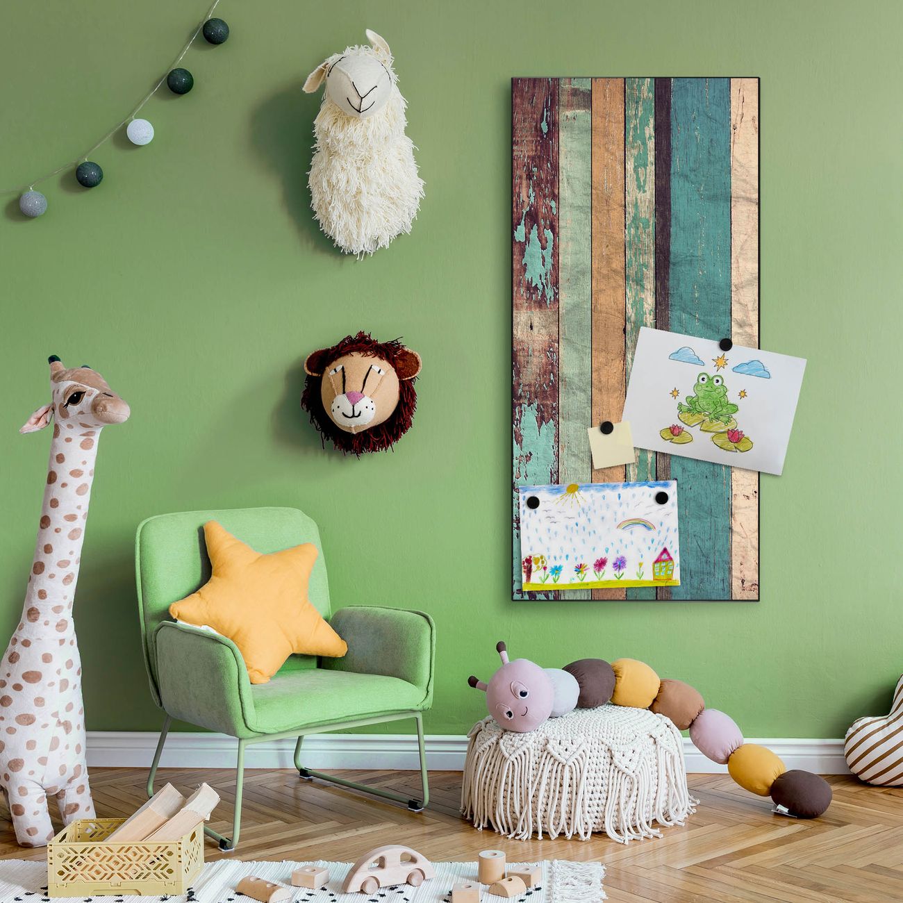 FUNKTION:  Die banjado Magnettafel mit Motiv Bunte Bretterwand Motiv bringt Ordnung in Ihr Zettelchaos. Fotos, Termine, Notizen oder Rezepte lassen Sich hier stilvoll mit Magneten ordnen, Sie behalten alles im Blick. An der Design Magnettafel halten alle handesüblichen Magnete. DESIGN:  Die magnetische Pinnwand mit dem Motiv Motiv Bunte Bretterwand ist ein eleganter Begleiter im Alltag. Mit dieser Memotafel aus Metall haben Sie auch ohne Notizen und Magnete ein schönes Dekoelement. Das Format bietet Ihnen ausreichend Platz um alle wichtigen Informationen im Blick zu behalten. DETAILS:  Die Magnettafel besteht aus silber-grau, weiß oder schwarzlackiertem Stahl. Sie hat eine Größe von 37 x 78 x 2cm. Es befinden sich auf der Rückseite vorgefertigte Aufhängungen die eine schnelle und unkomplizierte Anbringung ermöglichen. Das Motiv ist mit einem seidenmatten Laminat versehen und schützt so zusätzlich vor Kratzern. NUTZEN:  Sie können dieses Memoboard groß als Wandbild nutzen, es halten alle handelsüblichen Magneten daran. Die Pinnwand ist mit einem feuchten Lappen oder Schwamm abwischbar. Sie finden bei uns eine große Auswahl an passenden Magneten. BANJADO:  Wir sind ein kleines Team aus dem Herzen von Sachsen. Wir fertigen alle Artikel von Hand für Sie an, Sie erhalten keine preiswerte Importware. Auf Wunsch können Sie auch Ihr eigenes Foto auf die Magnettafel aufbringen, schreiben Sie uns an. Herzlichst, Ihr banjado-Team