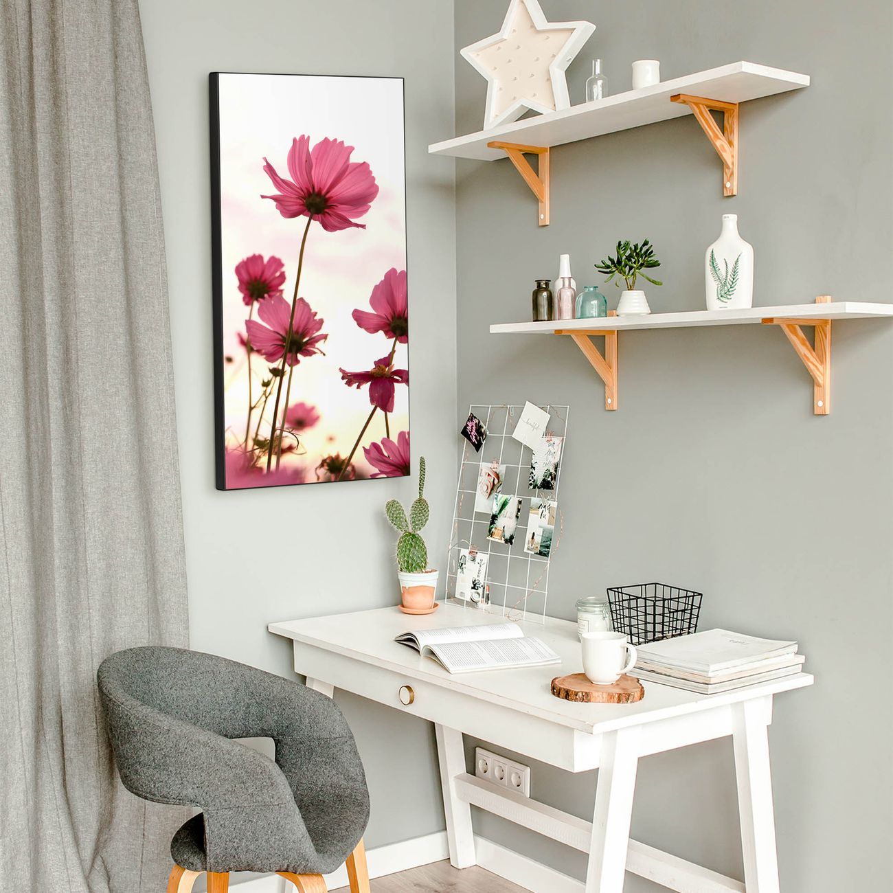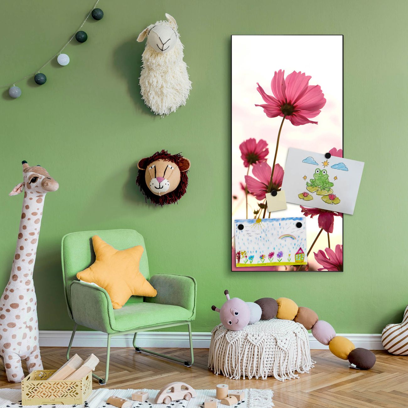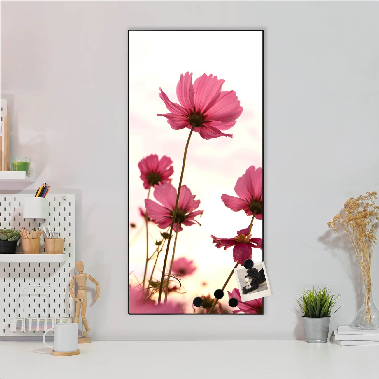 FUNKTION:  Die banjado Magnettafel mit Motiv Cosmea Motiv bringt Ordnung in Ihr Zettelchaos. Fotos, Termine, Notizen oder Rezepte lassen Sich hier stilvoll mit Magneten ordnen, Sie behalten alles im Blick. An der Design Magnettafel halten alle handesüblichen Magnete. DESIGN:  Die magnetische Pinnwand mit dem Motiv Motiv Cosmea ist ein eleganter Begleiter im Alltag. Mit dieser Memotafel aus Metall haben Sie auch ohne Notizen und Magnete ein schönes Dekoelement. Das Format bietet Ihnen ausreichend Platz um alle wichtigen Informationen im Blick zu behalten. DETAILS:  Die Magnettafel besteht aus silber-grau, weiß oder schwarzlackiertem Stahl. Sie hat eine Größe von 37 x 78 x 2cm. Es befinden sich auf der Rückseite vorgefertigte Aufhängungen die eine schnelle und unkomplizierte Anbringung ermöglichen. Das Motiv ist mit einem seidenmatten Laminat versehen und schützt so zusätzlich vor Kratzern. NUTZEN:  Sie können dieses Memoboard groß als Wandbild nutzen, es halten alle handelsüblichen Magneten daran. Die Pinnwand ist mit einem feuchten Lappen oder Schwamm abwischbar. Sie finden bei uns eine große Auswahl an passenden Magneten. BANJADO:  Wir sind ein kleines Team aus dem Herzen von Sachsen. Wir fertigen alle Artikel von Hand für Sie an, Sie erhalten keine preiswerte Importware. Auf Wunsch können Sie auch Ihr eigenes Foto auf die Magnettafel aufbringen, schreiben Sie uns an. Herzlichst, Ihr banjado-Team