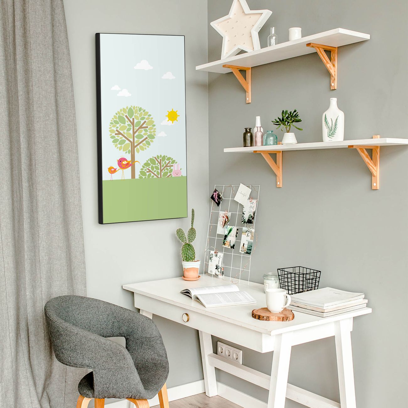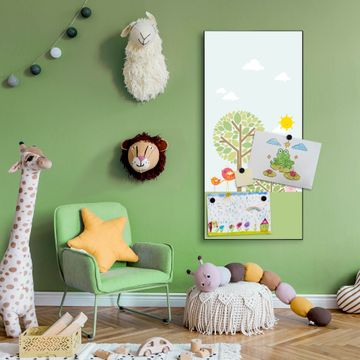 FUNKTION:  Die banjado Magnettafel mit Motiv Drei Bäume Motiv bringt Ordnung in Ihr Zettelchaos. Fotos, Termine, Notizen oder Rezepte lassen Sich hier stilvoll mit Magneten ordnen, Sie behalten alles im Blick. An der Design Magnettafel halten alle handesüblichen Magnete. DESIGN:  Die magnetische Pinnwand mit dem Motiv Motiv Drei Bäume ist ein eleganter Begleiter im Alltag. Mit dieser Memotafel aus Metall haben Sie auch ohne Notizen und Magnete ein schönes Dekoelement. Das Format bietet Ihnen ausreichend Platz um alle wichtigen Informationen im Blick zu behalten. DETAILS:  Die Magnettafel besteht aus silber-grau, weiß oder schwarzlackiertem Stahl. Sie hat eine Größe von 37 x 78 x 2cm. Es befinden sich auf der Rückseite vorgefertigte Aufhängungen die eine schnelle und unkomplizierte Anbringung ermöglichen. Das Motiv ist mit einem seidenmatten Laminat versehen und schützt so zusätzlich vor Kratzern. NUTZEN:  Sie können dieses Memoboard groß als Wandbild nutzen, es halten alle handelsüblichen Magneten daran. Die Pinnwand ist mit einem feuchten Lappen oder Schwamm abwischbar. Sie finden bei uns eine große Auswahl an passenden Magneten. BANJADO:  Wir sind ein kleines Team aus dem Herzen von Sachsen. Wir fertigen alle Artikel von Hand für Sie an, Sie erhalten keine preiswerte Importware. Auf Wunsch können Sie auch Ihr eigenes Foto auf die Magnettafel aufbringen, schreiben Sie uns an. Herzlichst, Ihr banjado-Team