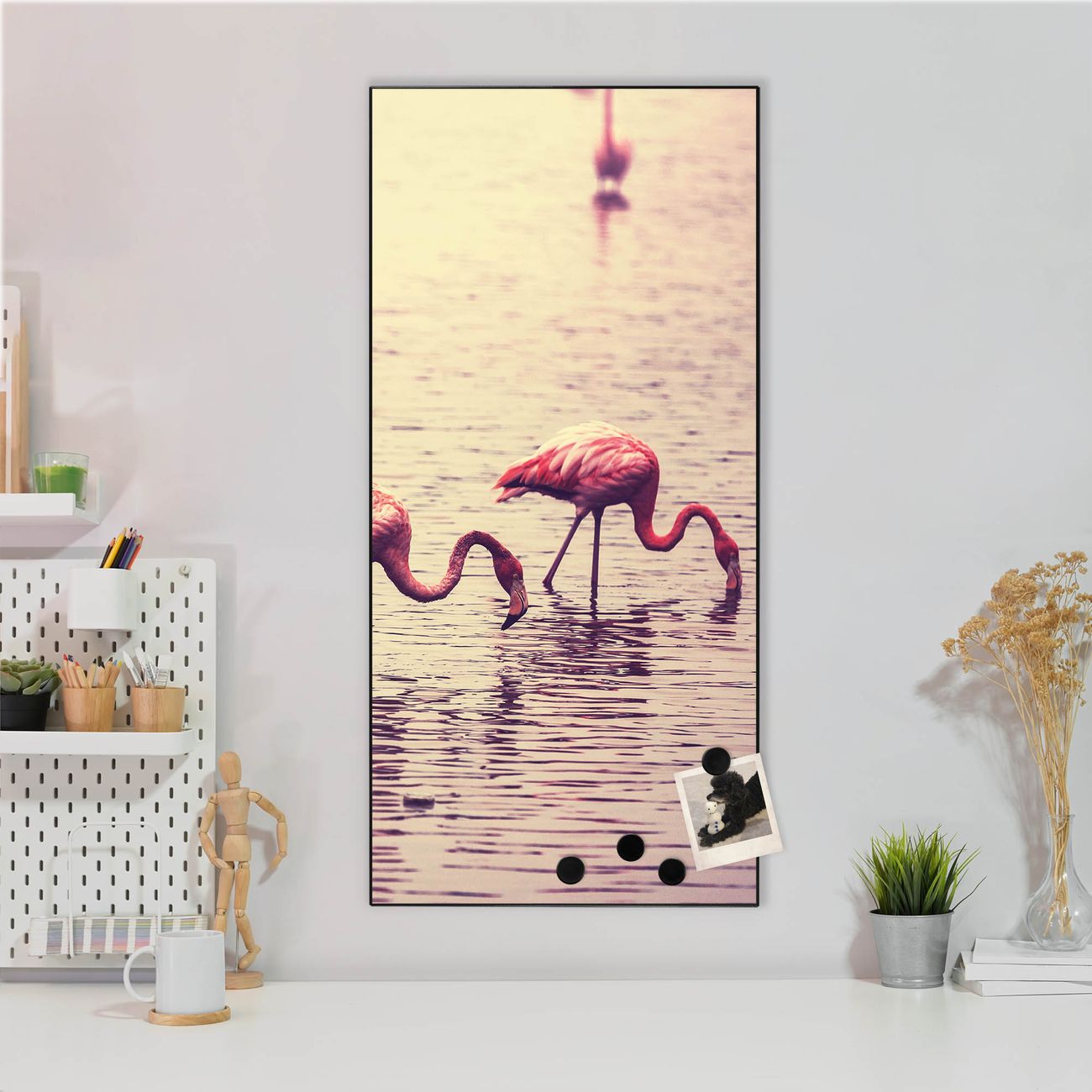 Stahl Magnettafel Hochformat 78x37cm Drei Flamnigos