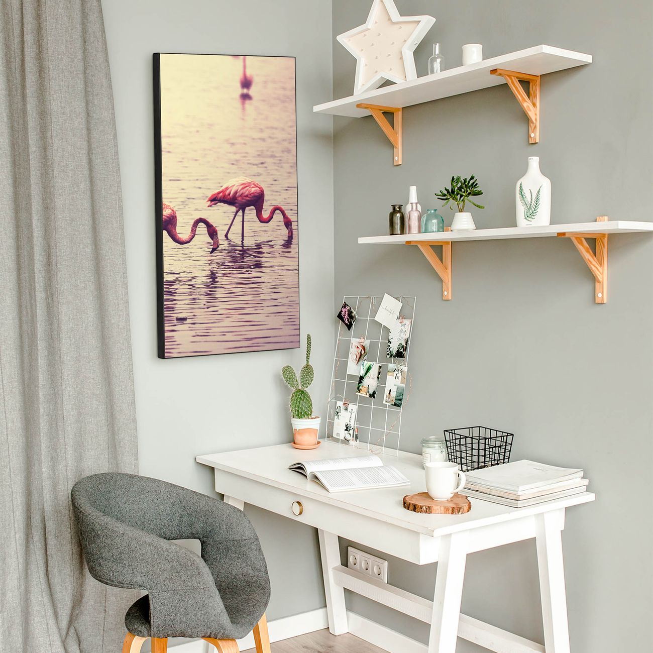 FUNKTION:  Die banjado Magnettafel mit Motiv Drei Flamnigos Motiv bringt Ordnung in Ihr Zettelchaos. Fotos, Termine, Notizen oder Rezepte lassen Sich hier stilvoll mit Magneten ordnen, Sie behalten alles im Blick. An der Design Magnettafel halten alle handesüblichen Magnete. DESIGN:  Die magnetische Pinnwand mit dem Motiv Motiv Drei Flamnigos ist ein eleganter Begleiter im Alltag. Mit dieser Memotafel aus Metall haben Sie auch ohne Notizen und Magnete ein schönes Dekoelement. Das Format bietet Ihnen ausreichend Platz um alle wichtigen Informationen im Blick zu behalten. DETAILS:  Die Magnettafel besteht aus silber-grau, weiß oder schwarzlackiertem Stahl. Sie hat eine Größe von 37 x 78 x 2cm. Es befinden sich auf der Rückseite vorgefertigte Aufhängungen die eine schnelle und unkomplizierte Anbringung ermöglichen. Das Motiv ist mit einem seidenmatten Laminat versehen und schützt so zusätzlich vor Kratzern. NUTZEN:  Sie können dieses Memoboard groß als Wandbild nutzen, es halten alle handelsüblichen Magneten daran. Die Pinnwand ist mit einem feuchten Lappen oder Schwamm abwischbar. Sie finden bei uns eine große Auswahl an passenden Magneten. BANJADO:  Wir sind ein kleines Team aus dem Herzen von Sachsen. Wir fertigen alle Artikel von Hand für Sie an, Sie erhalten keine preiswerte Importware. Auf Wunsch können Sie auch Ihr eigenes Foto auf die Magnettafel aufbringen, schreiben Sie uns an. Herzlichst, Ihr banjado-Team