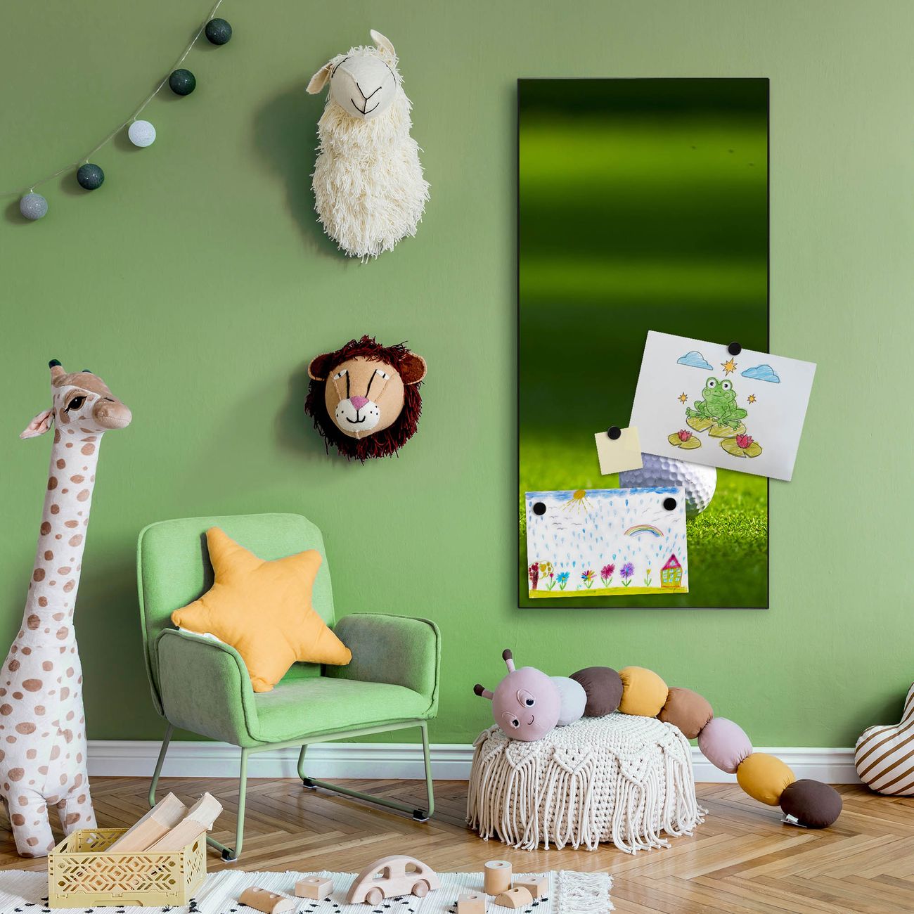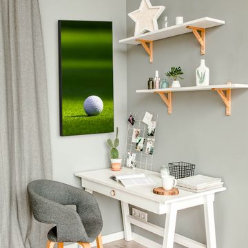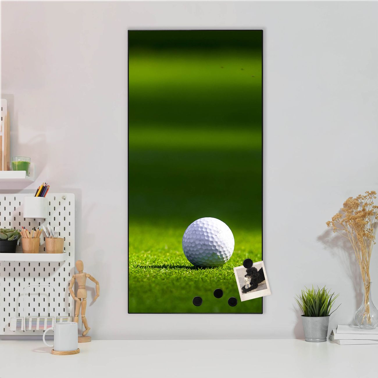 FUNKTION:  Die banjado Magnettafel mit Motiv Einsamer Golfball Motiv bringt Ordnung in Ihr Zettelchaos. Fotos, Termine, Notizen oder Rezepte lassen Sich hier stilvoll mit Magneten ordnen, Sie behalten alles im Blick. An der Design Magnettafel halten alle handesüblichen Magnete. DESIGN:  Die magnetische Pinnwand mit dem Motiv Motiv Einsamer Golfball ist ein eleganter Begleiter im Alltag. Mit dieser Memotafel aus Metall haben Sie auch ohne Notizen und Magnete ein schönes Dekoelement. Das Format bietet Ihnen ausreichend Platz um alle wichtigen Informationen im Blick zu behalten. DETAILS:  Die Magnettafel besteht aus silber-grau, weiß oder schwarzlackiertem Stahl. Sie hat eine Größe von 37 x 78 x 2cm. Es befinden sich auf der Rückseite vorgefertigte Aufhängungen die eine schnelle und unkomplizierte Anbringung ermöglichen. Das Motiv ist mit einem seidenmatten Laminat versehen und schützt so zusätzlich vor Kratzern. NUTZEN:  Sie können dieses Memoboard groß als Wandbild nutzen, es halten alle handelsüblichen Magneten daran. Die Pinnwand ist mit einem feuchten Lappen oder Schwamm abwischbar. Sie finden bei uns eine große Auswahl an passenden Magneten. BANJADO:  Wir sind ein kleines Team aus dem Herzen von Sachsen. Wir fertigen alle Artikel von Hand für Sie an, Sie erhalten keine preiswerte Importware. Auf Wunsch können Sie auch Ihr eigenes Foto auf die Magnettafel aufbringen, schreiben Sie uns an. Herzlichst, Ihr banjado-Team