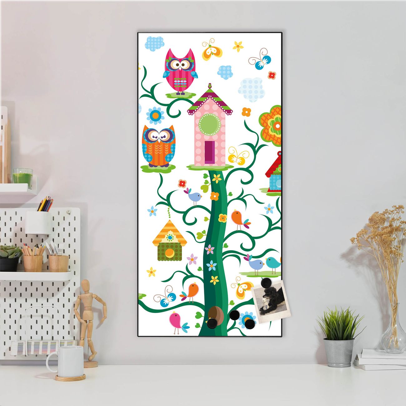 Stahl Magnettafel Hochformat 78x37cm Eulenfamilie